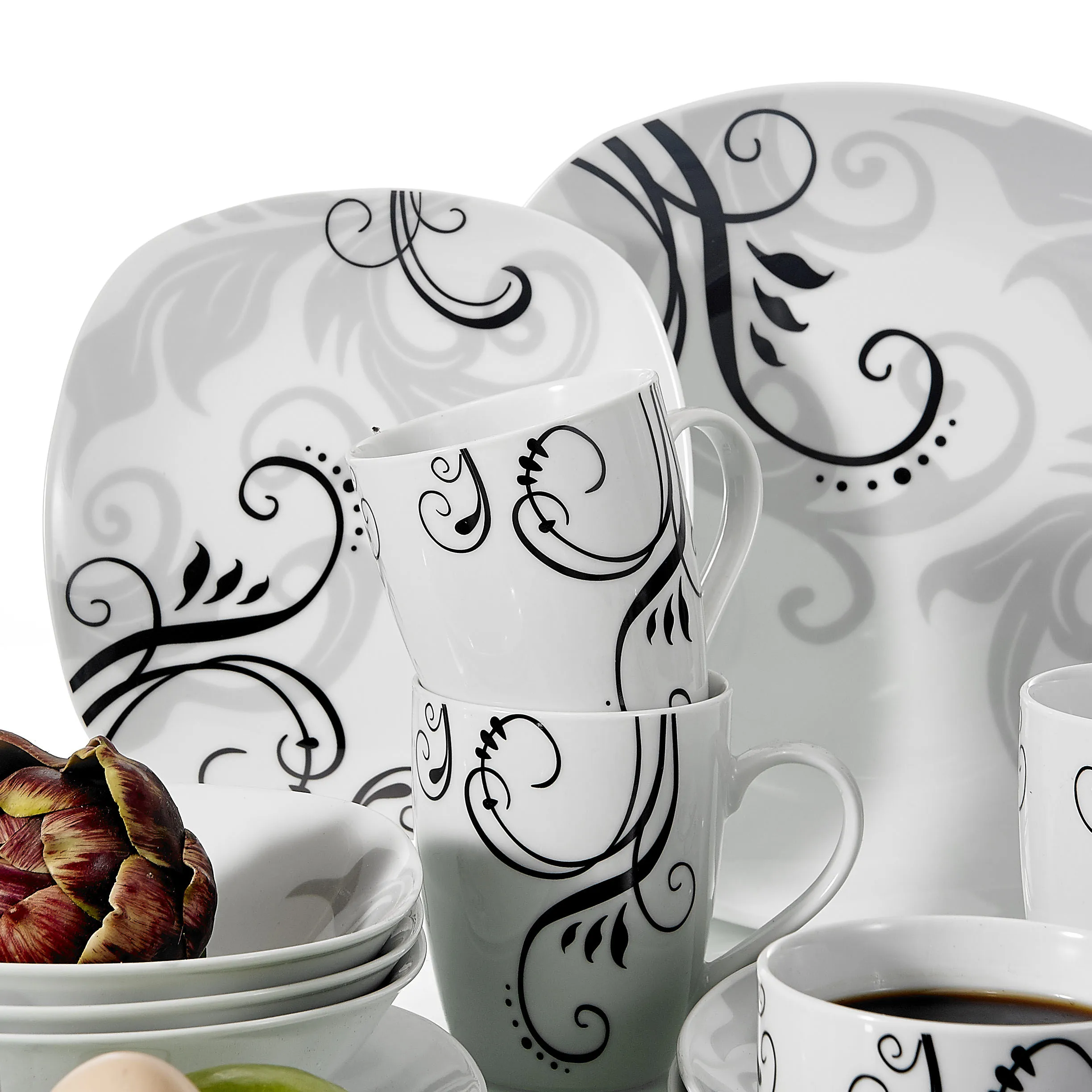 Special Offer VEWEET ZOEY juego de vajilla de porcelana de 40 piezas Juego de vajilla con patrón de calcomanía juegos de vajilla con plato de cena, plato de postre, tazón, taza, taza de huevo Discount 30% Today!