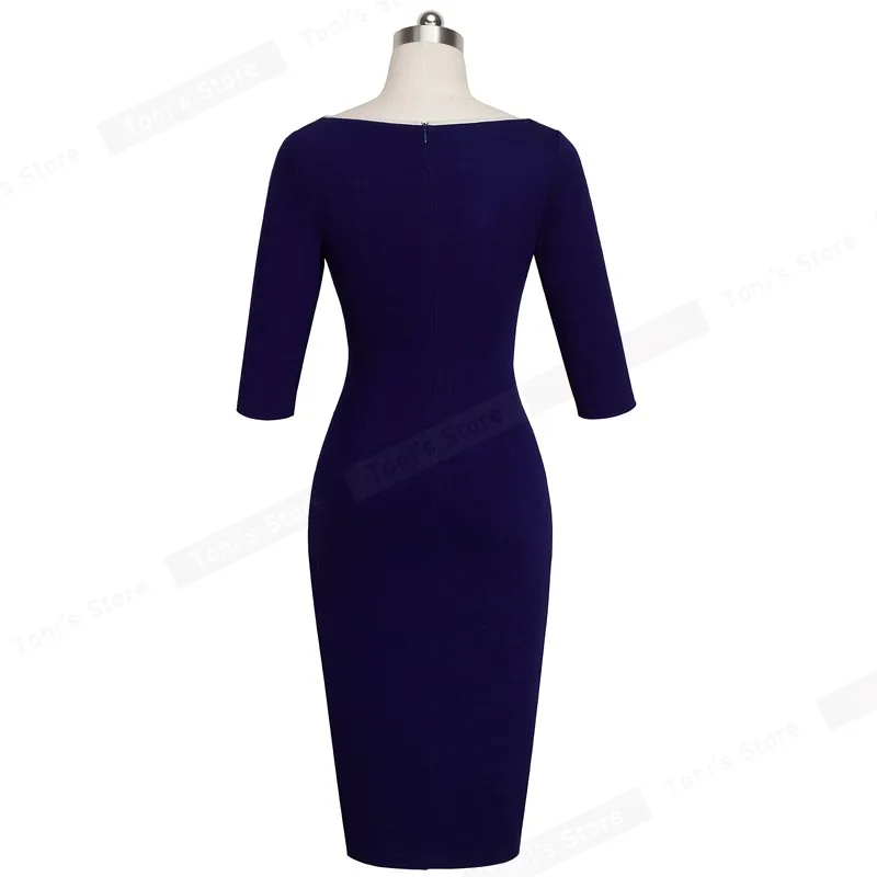 Special Offer Nice forever Vintage breve partido inferior elegante trabajo Casual 3 4 manga profundo cuello redondo ceñido rodilla mujeres Oficina lápiz vestido B329 Discount 32% Today!