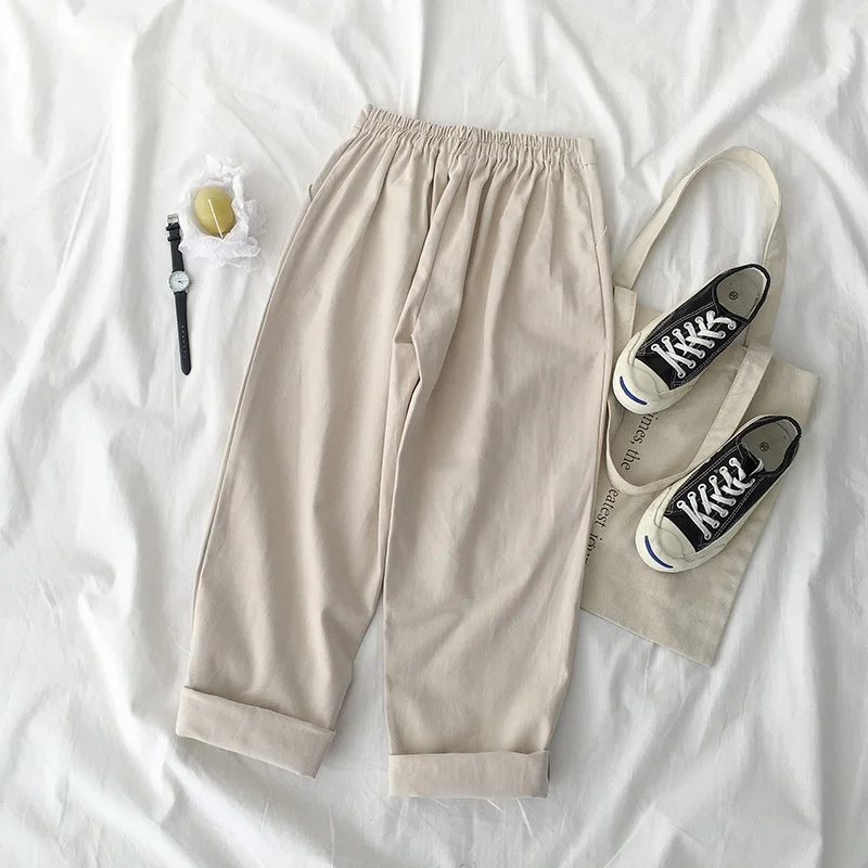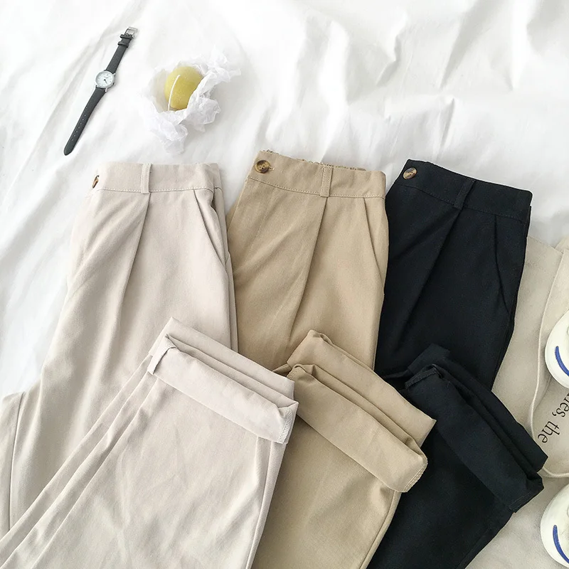 Special Offer Pantalón largo informal de estilo Safari para mujer Pantalones de pierna ancha de cintura alta de moda sólida para mujer Pantalones de algodón negro Harajuku para mujer Discount 35% Today!