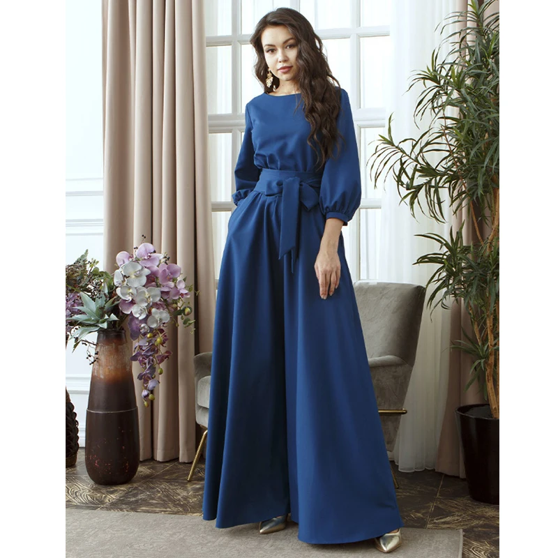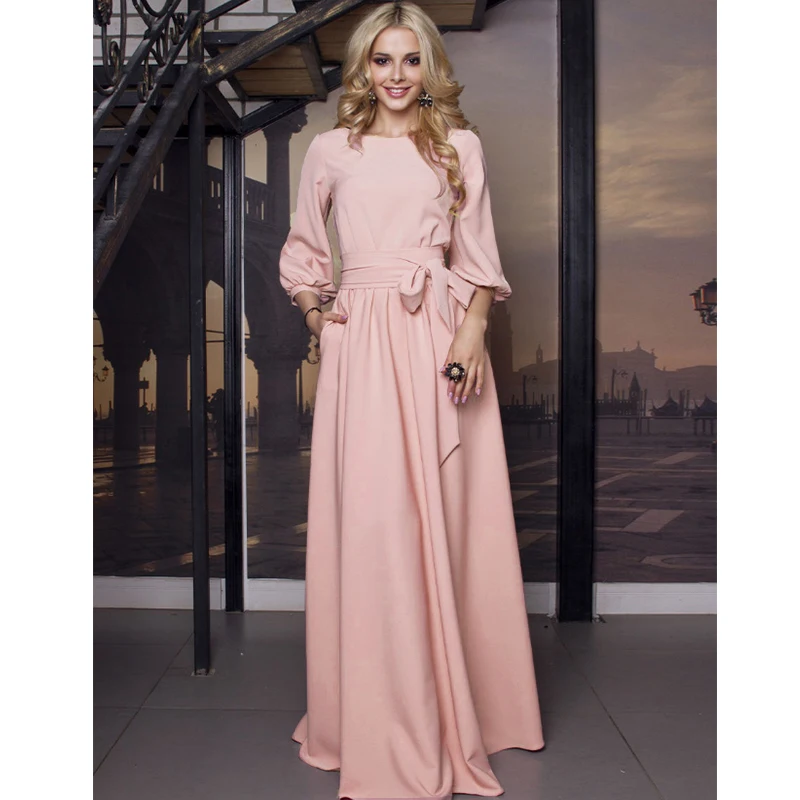 Special Offer 2019 Vintage pajarita Maxi largo vestido de fiesta señoras linterna manga cuello redondo sólido elegante vestido de Otoño de manga larga vestido Casual Discount 39% Today!