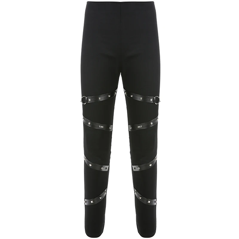 Special Offer Darlingaga Punk rock gótico negro skinny alta cintura pantalones PU cuero remaches remache pantalones mujeres 2019 nuevo inferior lápiz Pantalones Discount 40% Today!
