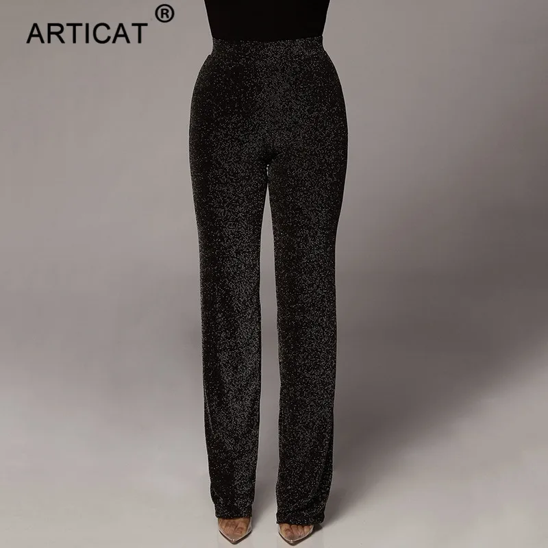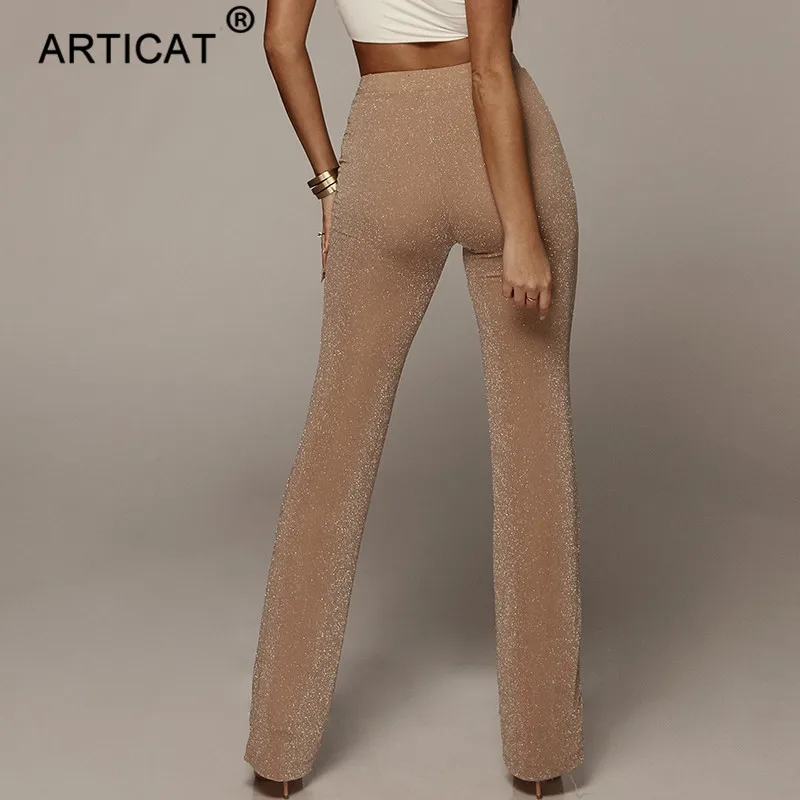 Special Offer Pantalones de pierna ancha de cintura alta de verano de Articat Pantalones de mujer sólidos de alta elasticidad Flare pantalones flacos casuales de fiesta de playa Pantalones de mujer Discount 45% Today!