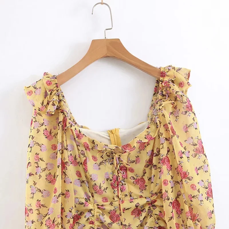 Special Offer Vestido bohemio de verano para mujer vintage Sexy con Encaje amarillo vestido casual vestidos coreanos boho chiffon vestido de fiesta 2019 Discount 45% Today!