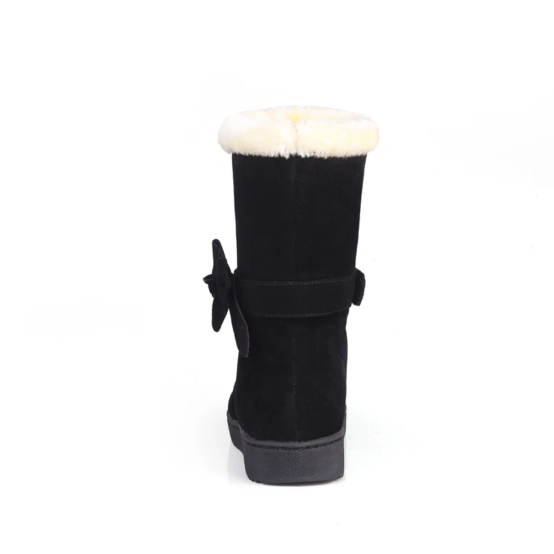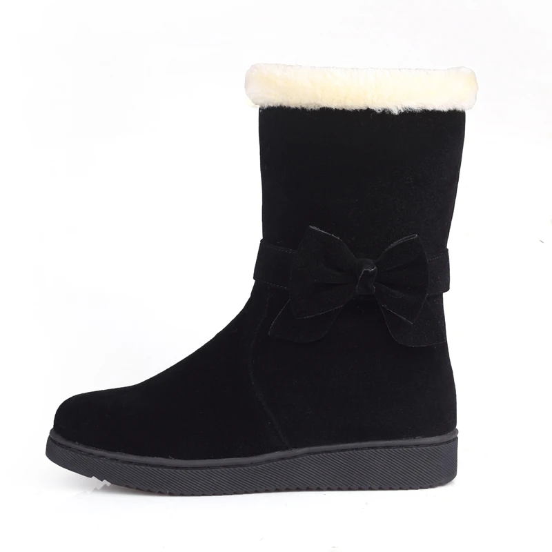 Special Offer Botas de nieve para mujer invierno cálido E228 plano largo de felpa señoras moda punta redonda Zapatos mujer negro vino rojo albaricoque arco Faux Fur botas Discount 48% Today!