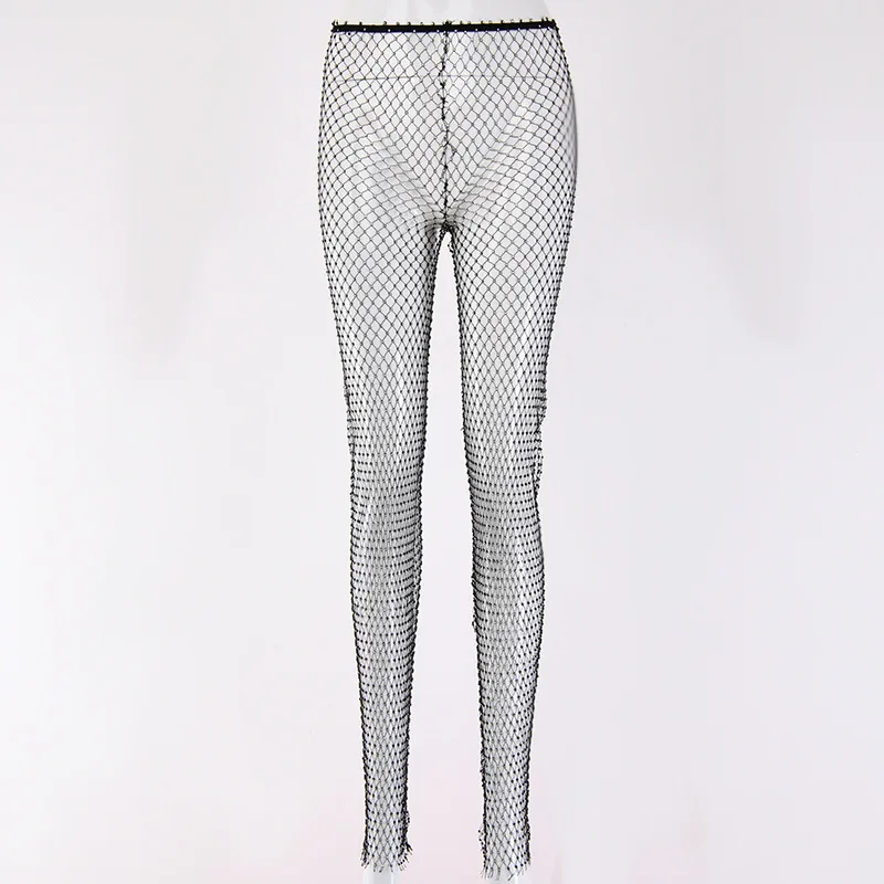 Special Offer Darcydebe diamantes negros pantalones de red Sexy para mujer Pantalones de fiesta de Club de playa transparente con diamantes de imitación de cristal Discount 49% Today!