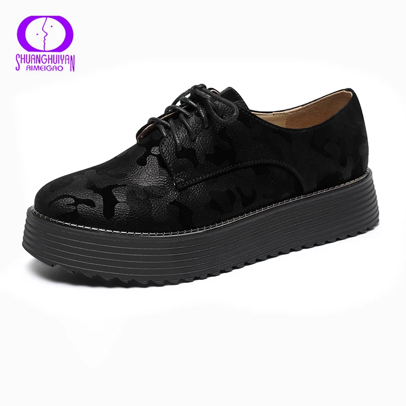 Special Offer AIMEIGAO primavera otoño zapatos de plataforma plana con cordones de fondo grueso Mujer Zapatos casuales estilo británico zapato brogue para dama Discount 60% Today!