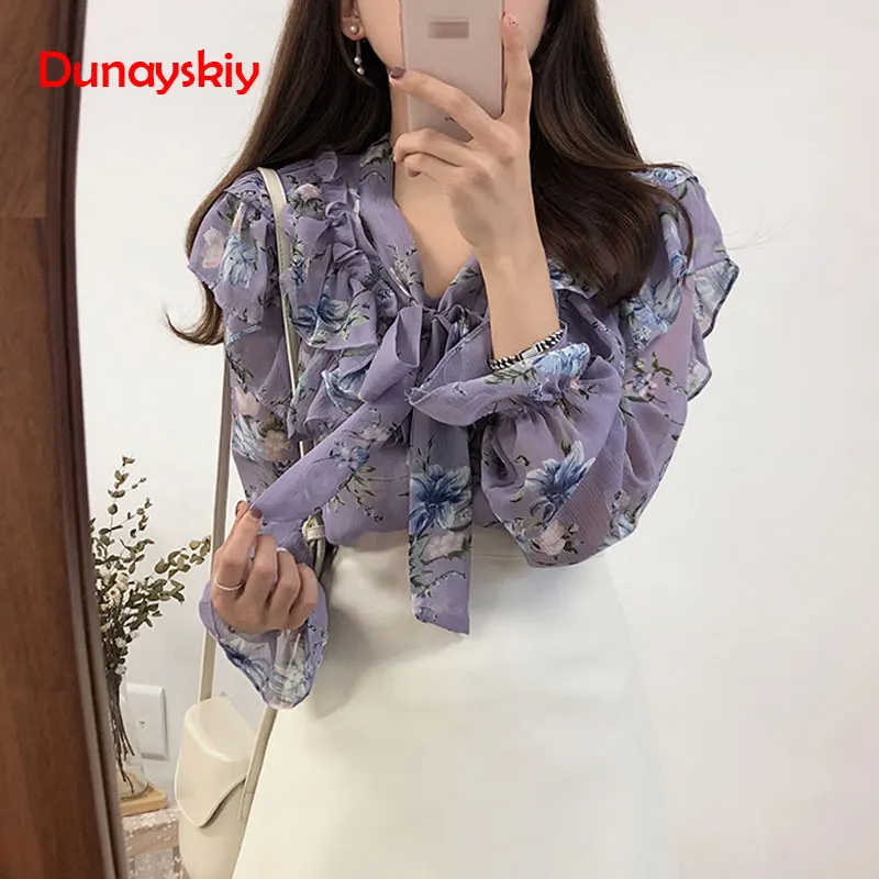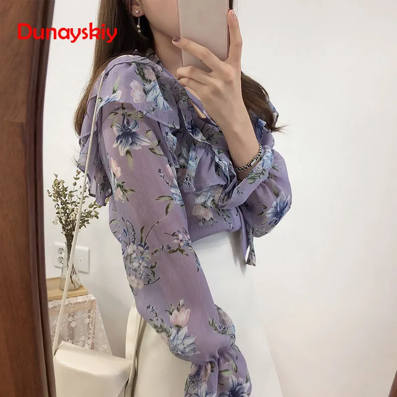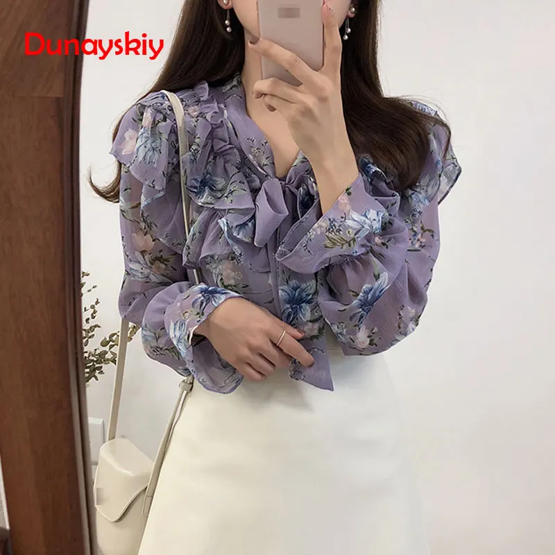 Special Offer 2020 blusas lindas y dulces con lazo gran oferta para mujer blusas con lazo de estilo coreano camisas para niñas púrpura Floral Vintage blusa superior Discount 0% Today!
