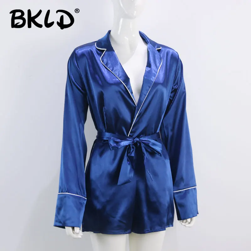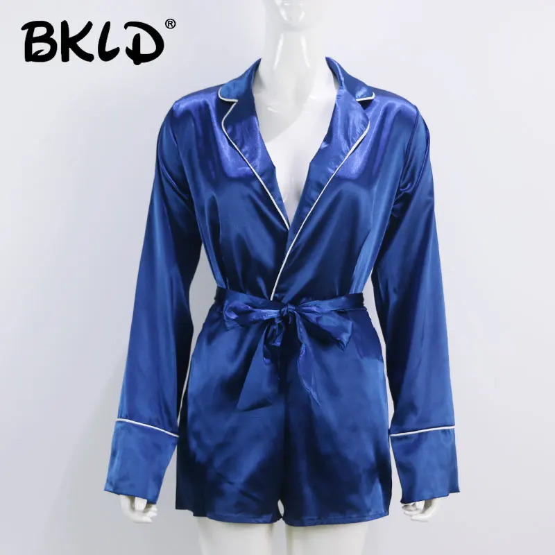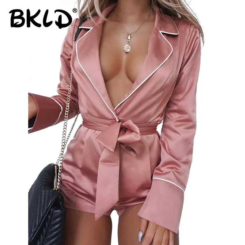 Special Offer BKLD Sexy cuello en V de encaje hacia arriba pijamas ropa de mujer 2018 primavera manga larga corto mono elegante satén Onesies señoras Discount 0% Today!