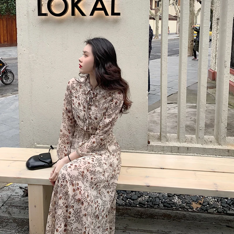 Special Offer Vestidos de la camisa de La pajarita lindo dulce de las mujeres de la manera del vestido de la vendimia de la gasa Floral de la señora del temperamento ocasional de la fecha 9329 Discount 11% Today!
