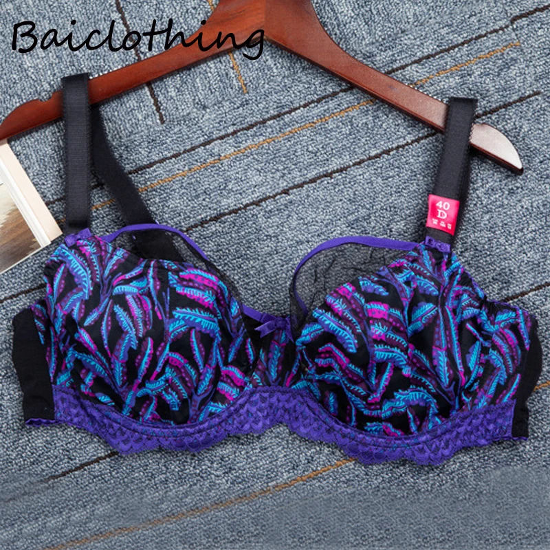 Special Offer Sujetador sin forro Floral de encaje sin relleno de cobertura completa de talla grande para mujer 30 ~ 44 D DD E F FF G Discount 25% Today!