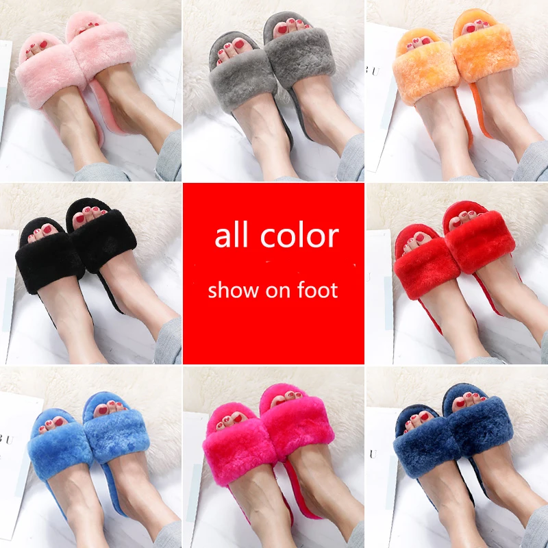 Special Offer Zapatillas de piel de oveja minmchas para mujer, zapatillas de mujer, de moda, de fondo grueso, hogar perezoso, interior, cálido, lana, palabra de arrastre Discount 25% Today!