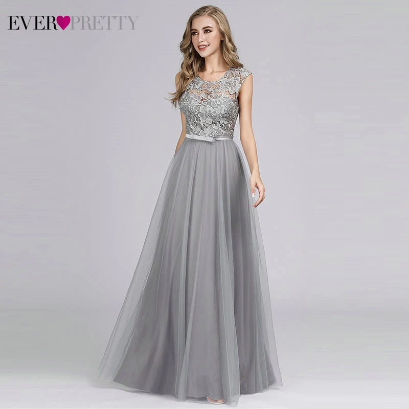 Special Offer Vestidos de dama de honor de color gris para mujer Línea A cuello redondo con lazo elegante encaje vestidos de fiesta de boda Sukienki keselne 2020 Discount 30% Today!