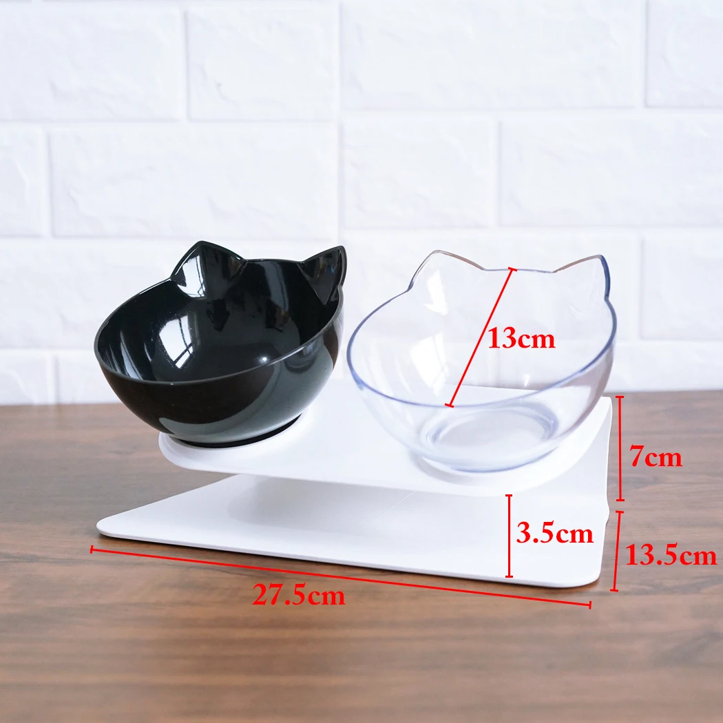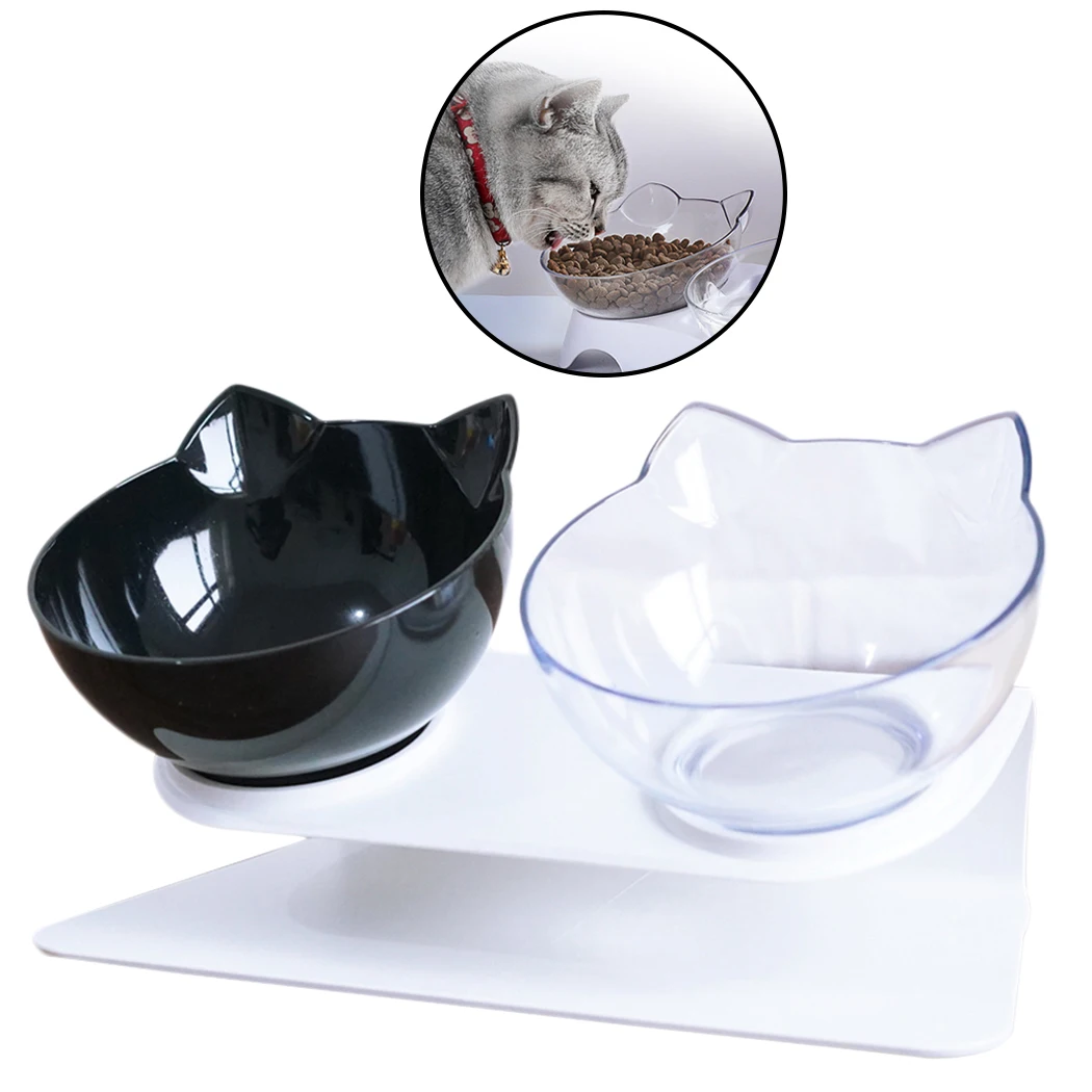 Special Offer Cuenco para mascotas creativo antideslizante Base de perro gato doble cuenco para alimentos agua transparente Forma de cara de gato doble cuenco suministros de alimentación para mascotas Discount 32% Today!