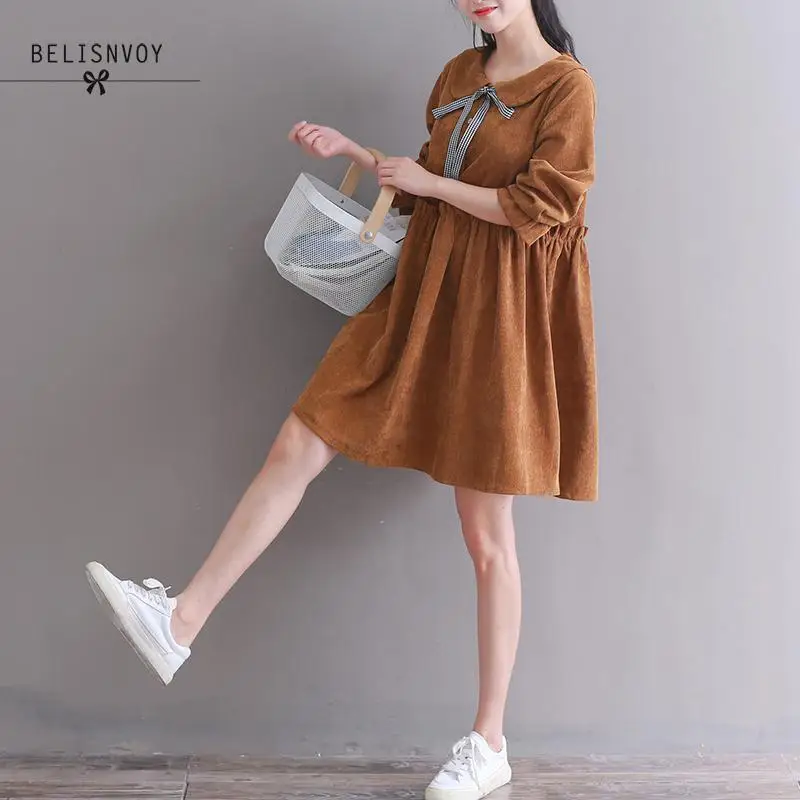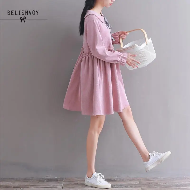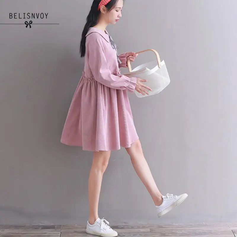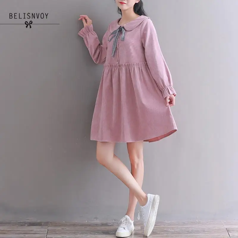 Special Offer Mori chica primavera otoño lindo vestido de mujer cuello Peter Pan PANA sólido Vestidos femeninos volantes sueltos manga larga Casual dulce Discount 32% Today!