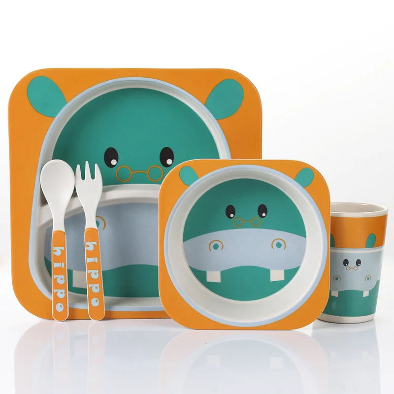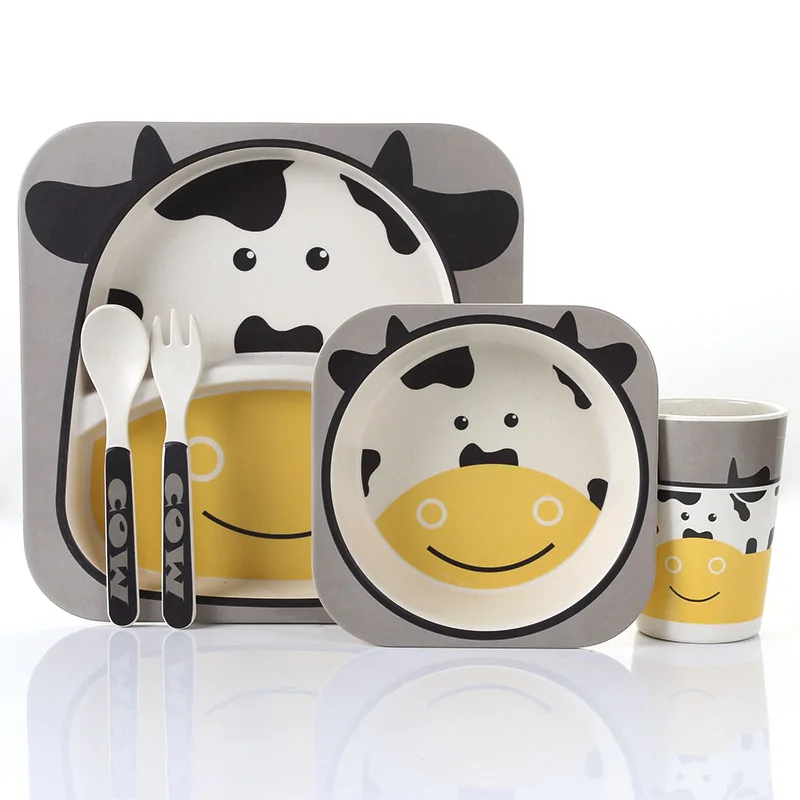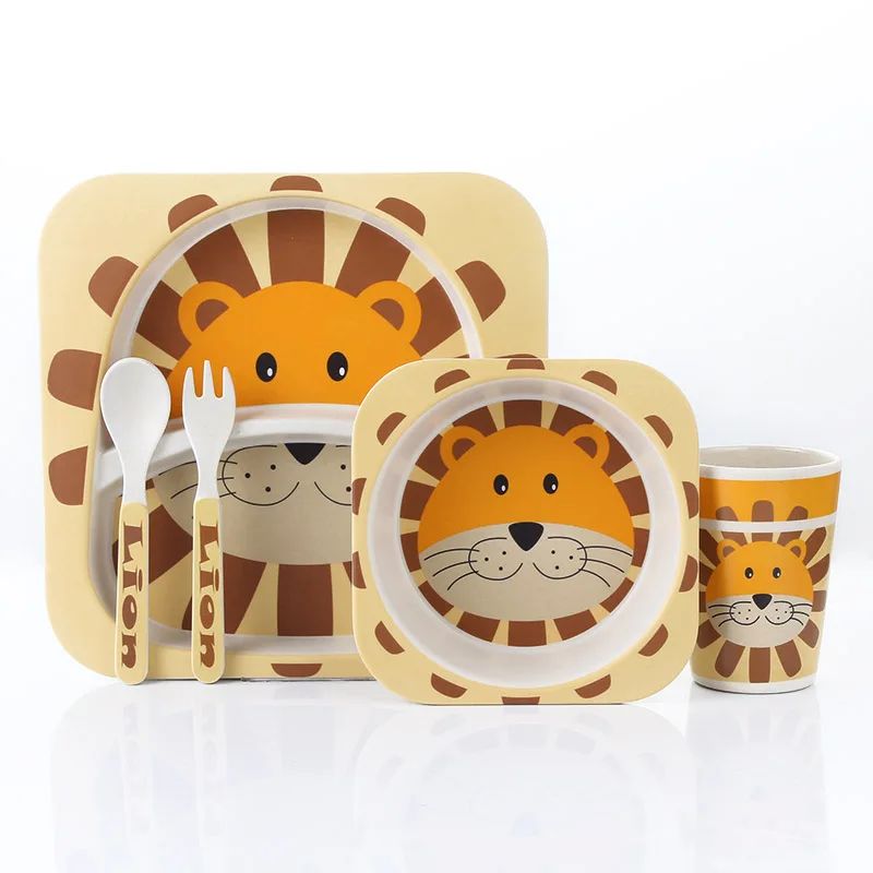 Special Offer Lekoch 5 unids set animal zoo bebé placa arco Copa horquillas vajilla juego de alimentación 100% de bebé de fibra de bambú de los niños Juego de vajilla Discount 37% Today!