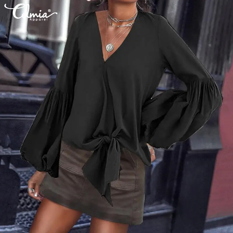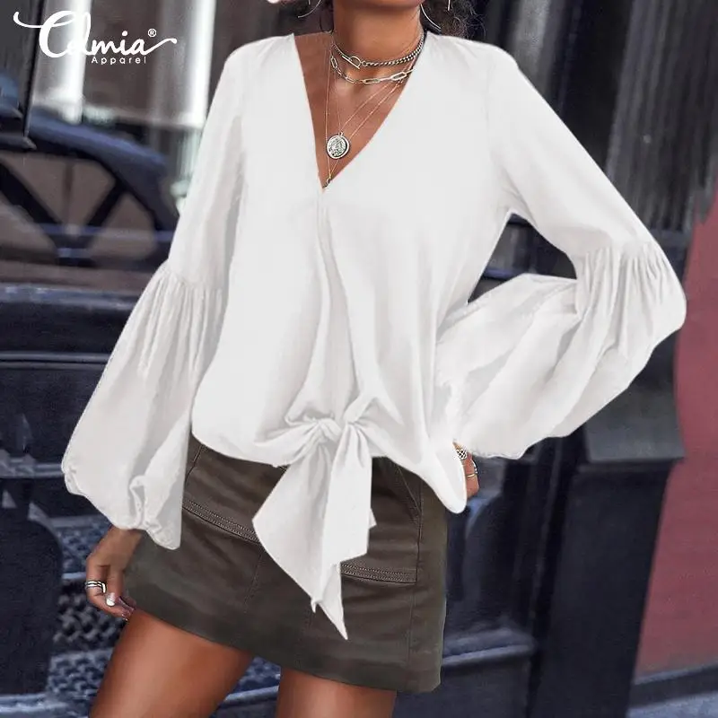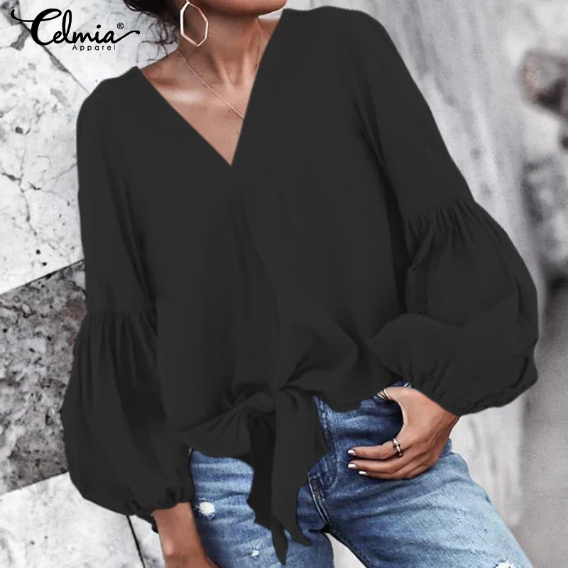 Special Offer Blusas elegantes de Celmia para mujer 2020 camisa de trabajo de moda Sexy cuello en V de manga larga Casual para mujer Blusas sueltas femeninas de talla grande Discount 40% Today!