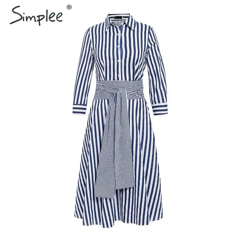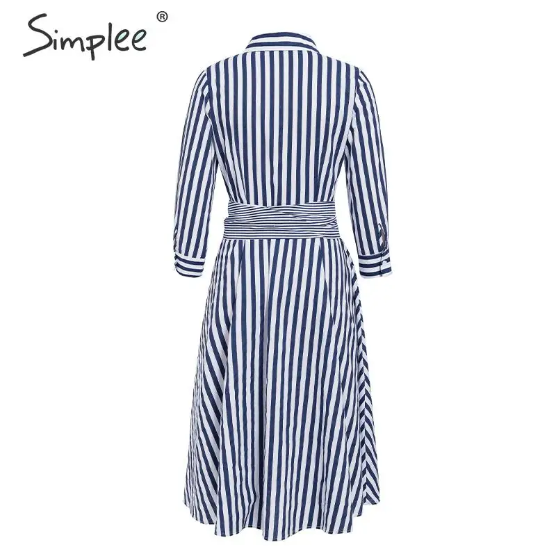 Special Offer Simplee Casual rayas mujeres vestido elegante de oficina cuarto manga arco atado midi vestido otoño señoras trabajo desgaste A line camisas vestido Discount 40% Today!