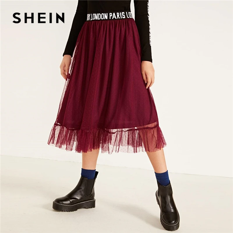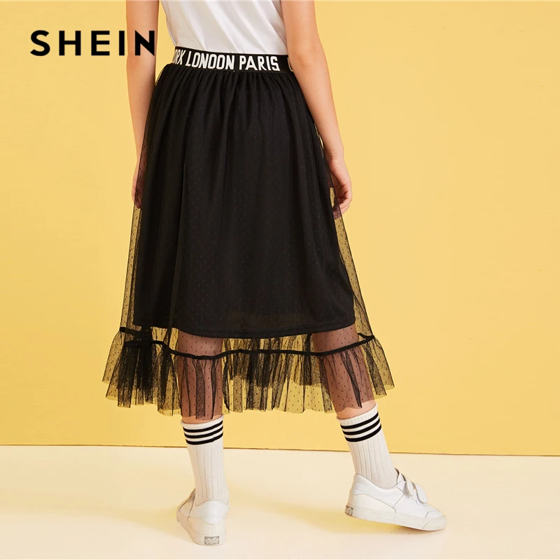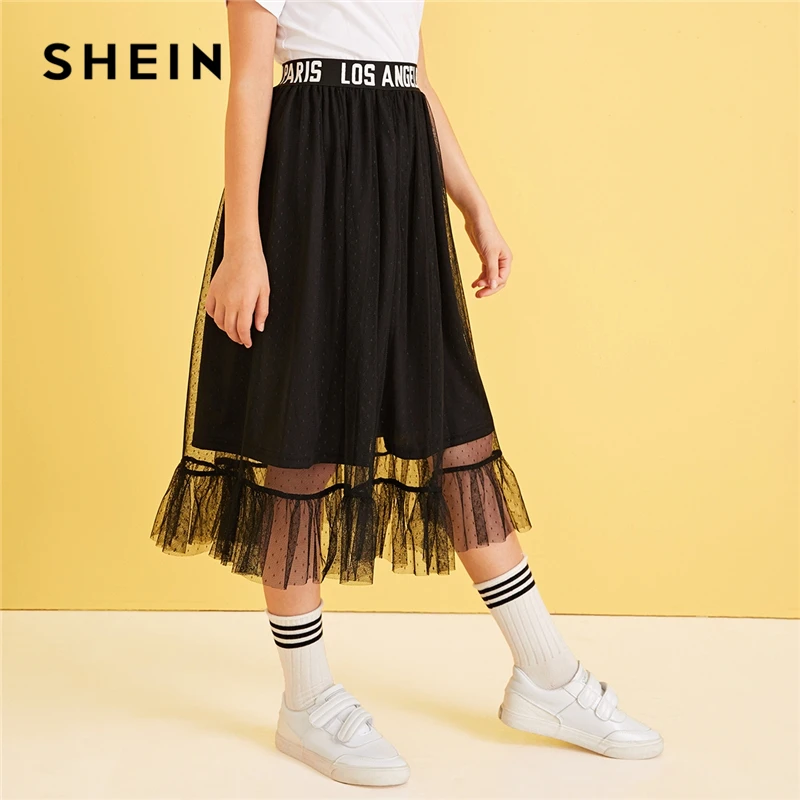 Special Offer SHEIN Kiddie Girls letra impresa cintura malla superposición falda niños Bottoms 2019 verano alta cintura Ruffle Hem una línea larga faldas lindas Discount 42% Today!