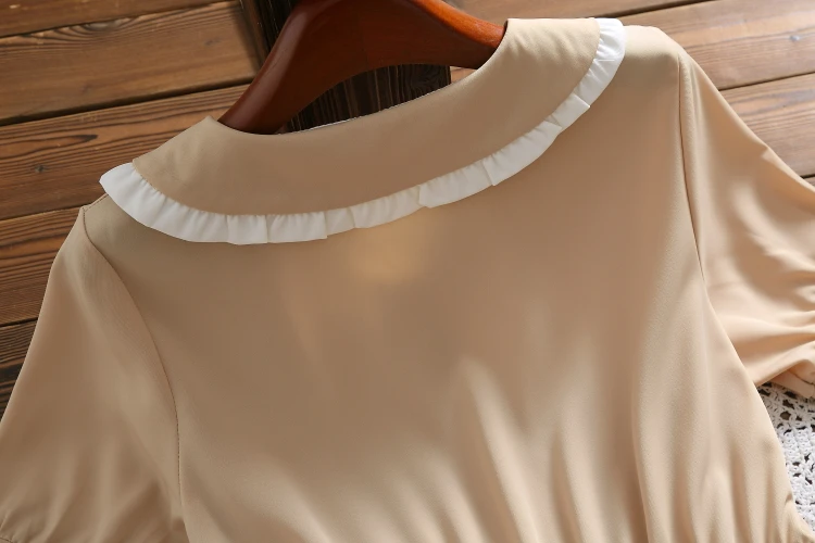 Special Offer Mori chica elegante vestido midi 2019 verano moda cuello peter pan manga corta vestido vintage mujeres vestidos sólidos Discount 44% Today!