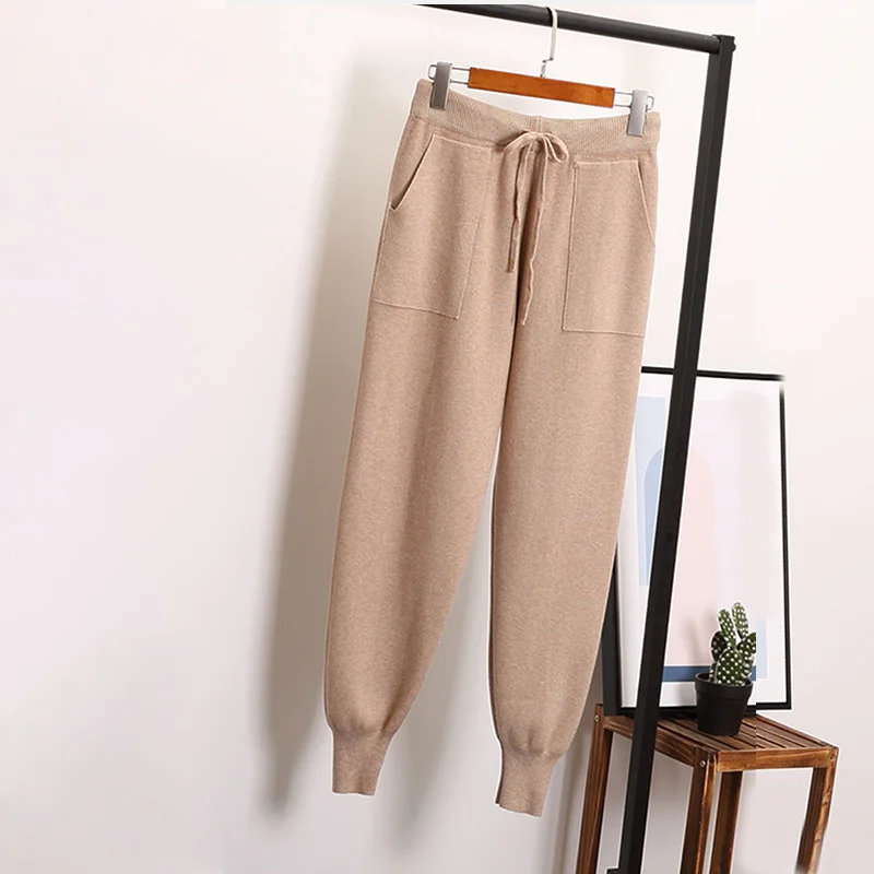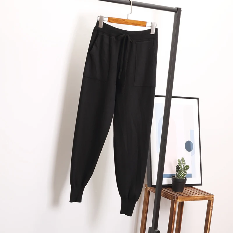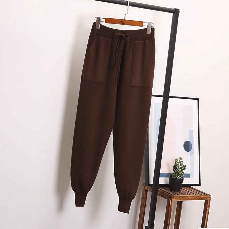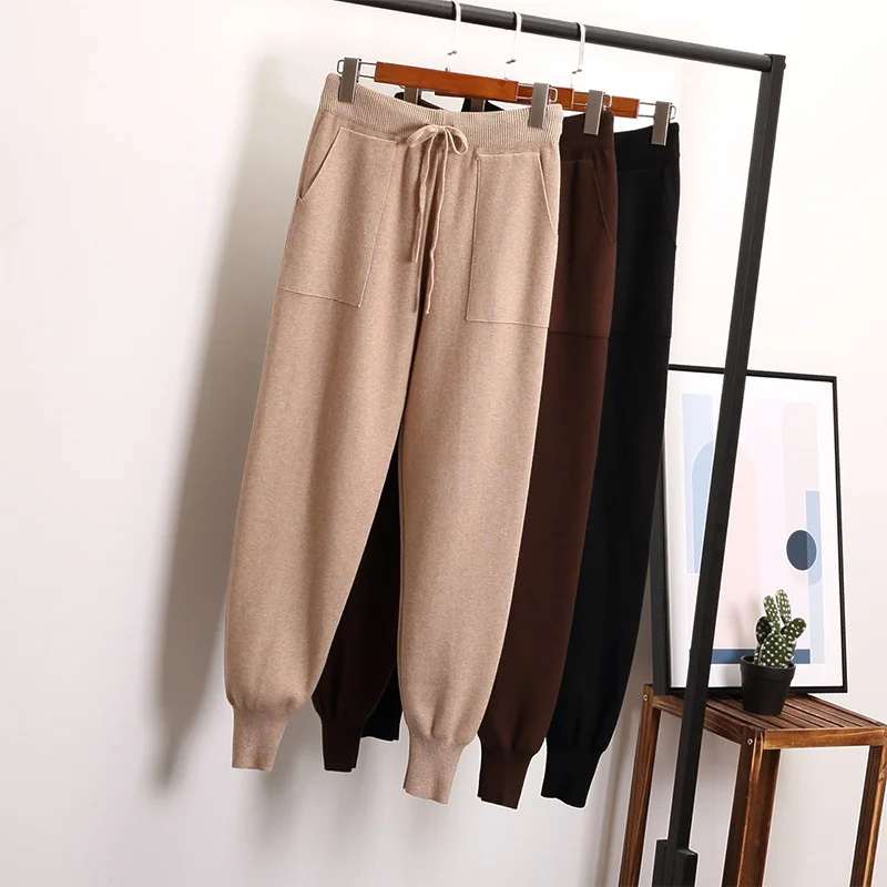 Special Offer Pantalones Harem sueltos pantalones tejidos para mujer Pantalones casuales Otoño Invierno suéter de Color sólido con bolsillos de fondo Discount 50% Today!