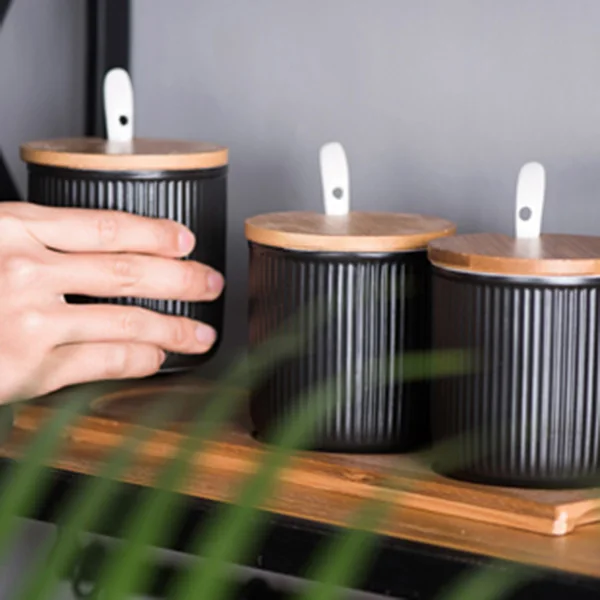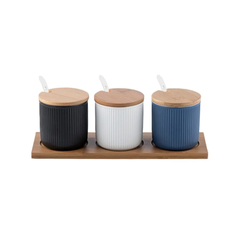 Special Offer Tarros de especias de cerámica de esmalte japonés creativos para el hogar Juegos de botellas de condimento de cocina de moda con Bandeja de cubierta de sello Discount 6% Today!