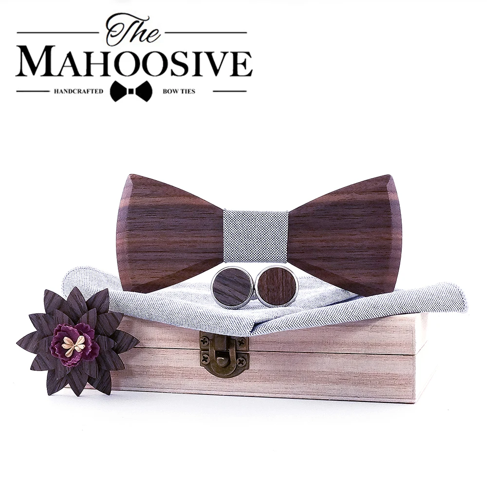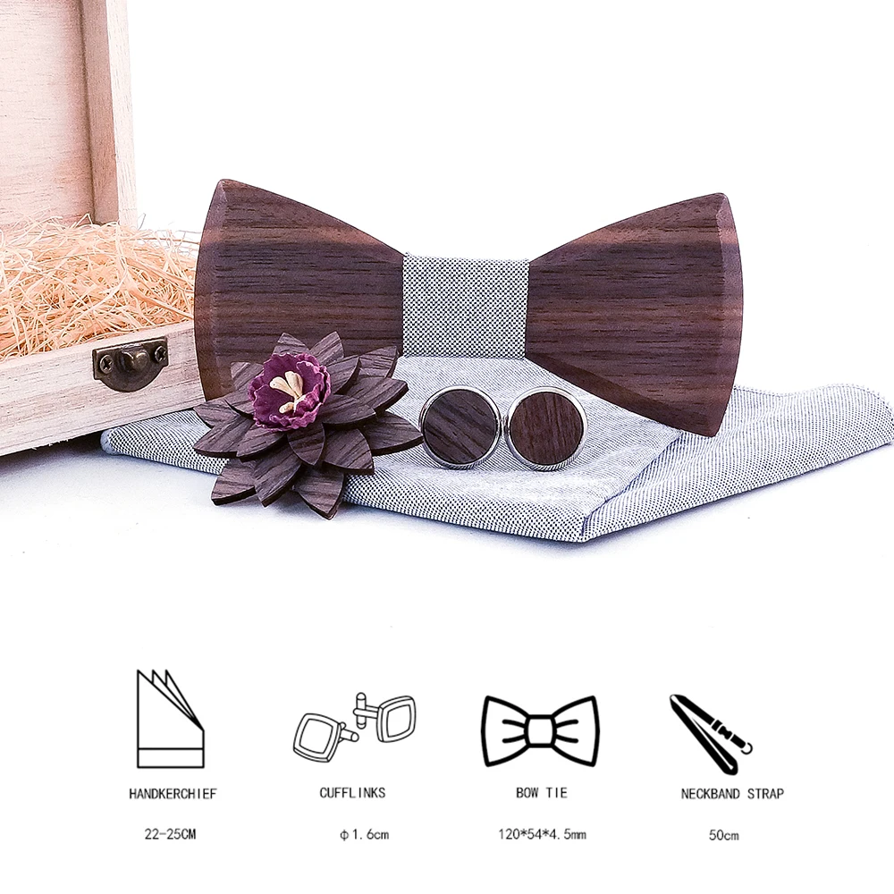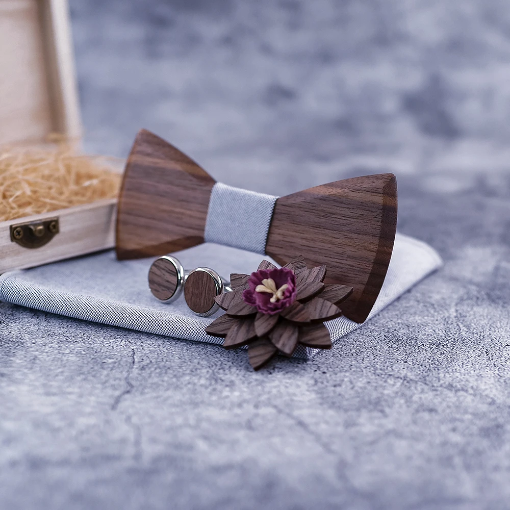 Special Offer Conjunto de pañuelo de pajarita de madera para hombre con gemelos flores de solapa diseño Floral caja de madera moda novedad corbata de hombre Discount 60% Today!