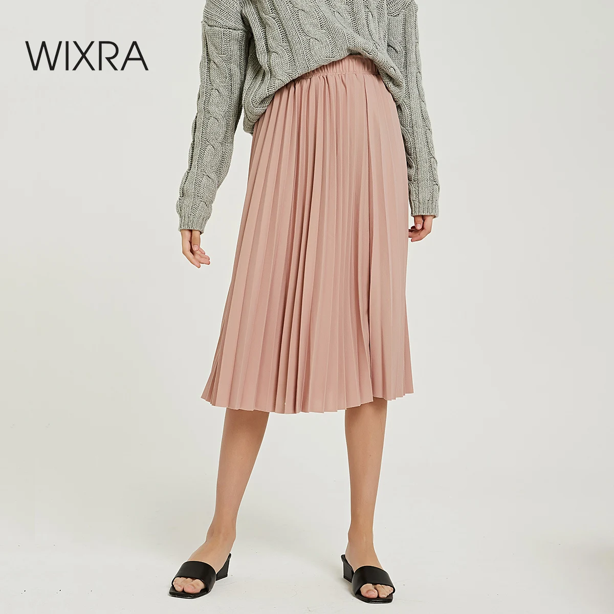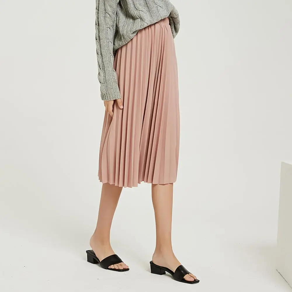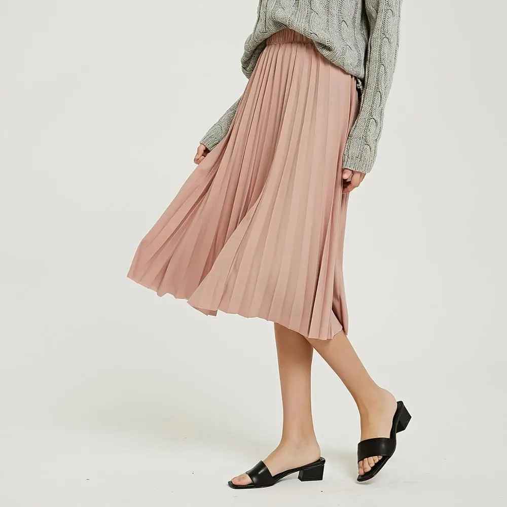 Special Offer Wixra 2019 nuevas faldas plisadas sólidas de cintura alta una línea de media pantorrilla falda verano otoño parte de abajo de mujer Discount 60% Today!