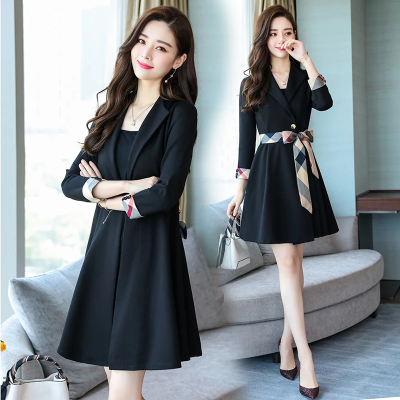Special Offer Vestido de manga larga para mujer otoño 2018 nuevo medio y largo Delgado temperamento pequeño viento falda Hong Kong sabor falda marea Discount 0% Today!