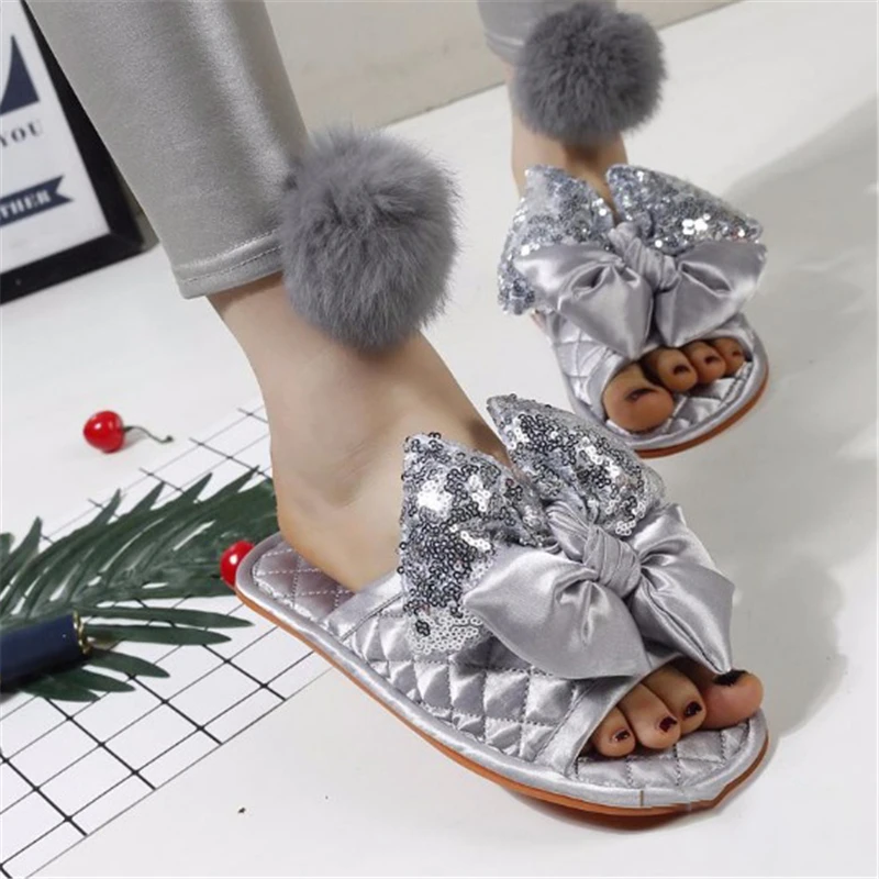 Special Offer Zapatillas de mujer zapatos planos de interior moda moño deslizador rojo casa zapatillas lentejuelas señoras zapatos antideslizantes verano Mujer calzado Discount 0% Today!