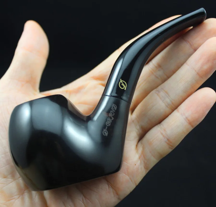 Special Offer Fondo plano hecho a mano naturaleza ébano pipa de fumar de madera redonda tabaco pipa de humo de madera regalo 10 piezas 9mm filtros + bolsa + soporte #409S Discount 10% Today!
