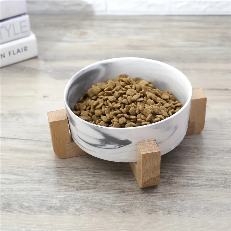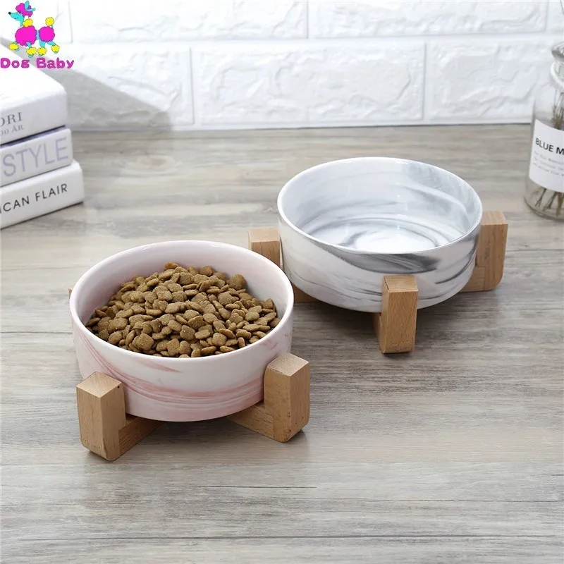 Special Offer Comederos para perros, cuencos de cerámica para perros, estante de madera, cuenco único de cerámica, comida para mascotas, bebida de agua, platos, alimentador Discount 30% Today!