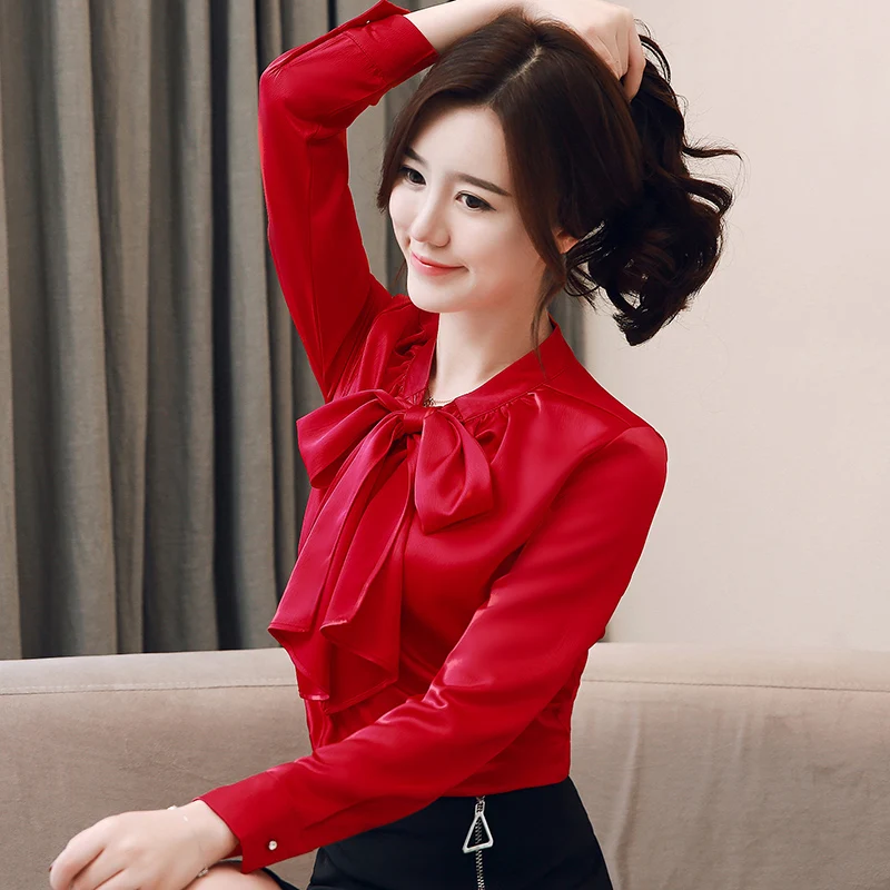 Special Offer Blusas y blusas de moda para mujer, blusa de oficina con cuello de lazo, Blusa de gasa sólida para mujer, camisa de manga larga para mujer, blusas 2042 50 Discount 31% Today!