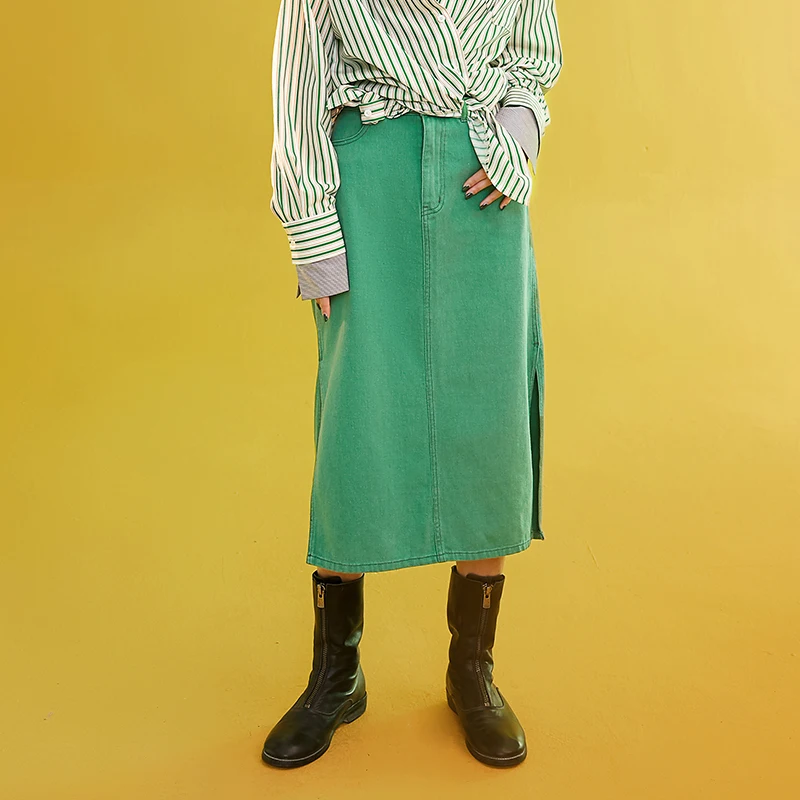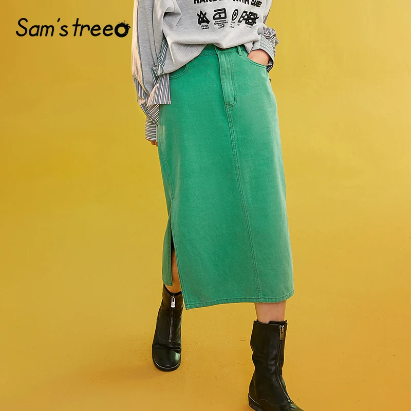Special Offer Sams árbol mujeres faldas de mezclilla verano 2019 Vintage sólido recto Oficina Falda larga para mujer lápiz media pantorrilla Femme alta cintura Bottoms Discount 35% Today!