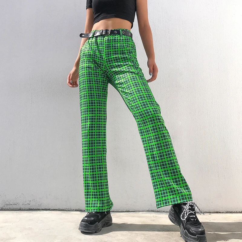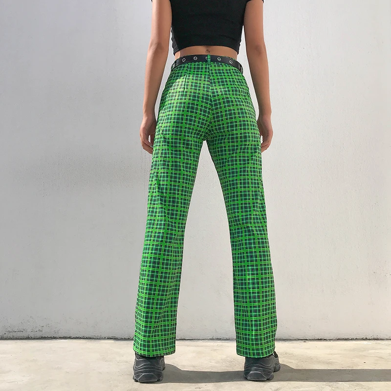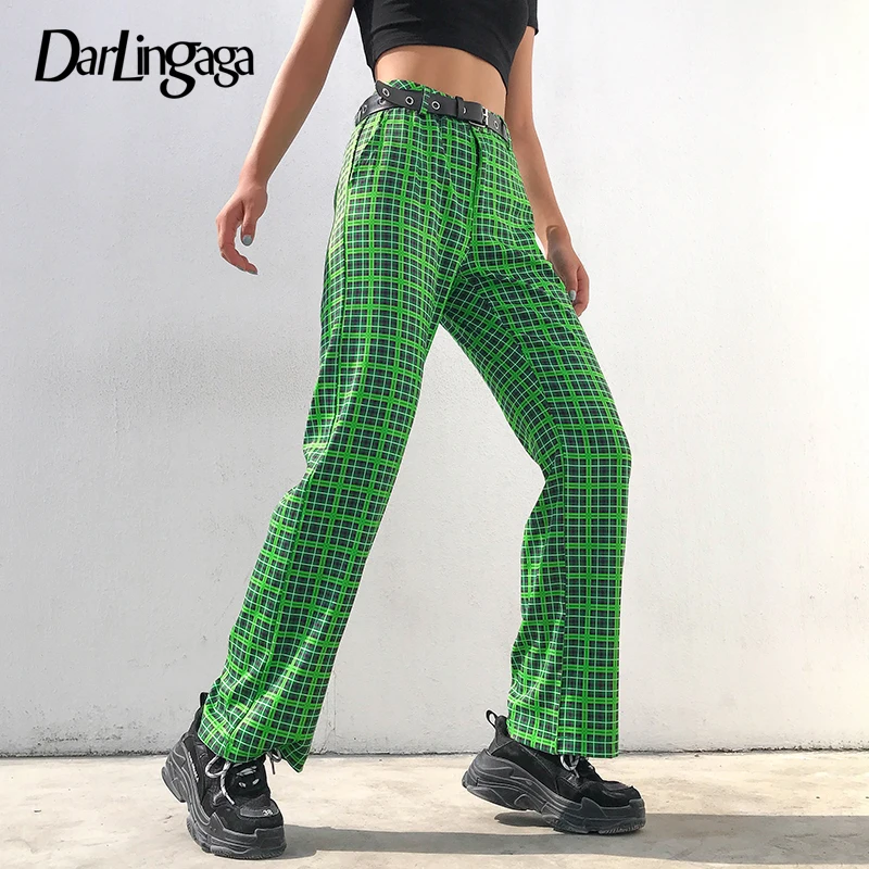 Special Offer Darlingaga Moda Verde a cuadros Harajuku Pantalones de mujer Pantalones rectos de alta cintura a cuadros Pantalones de otoño Pantalones holgados Discount 40% Today!