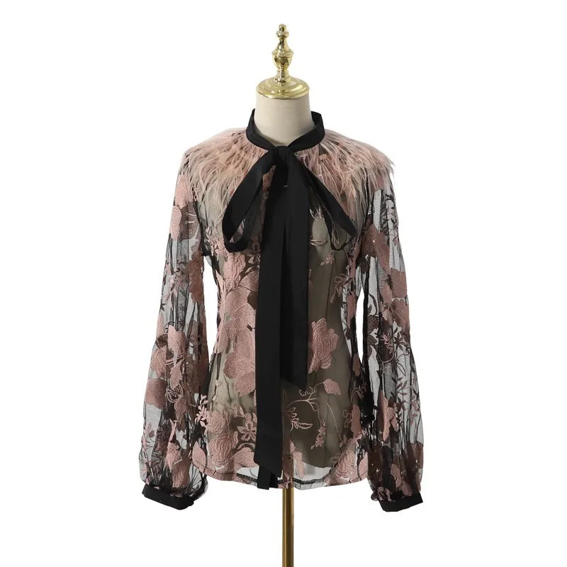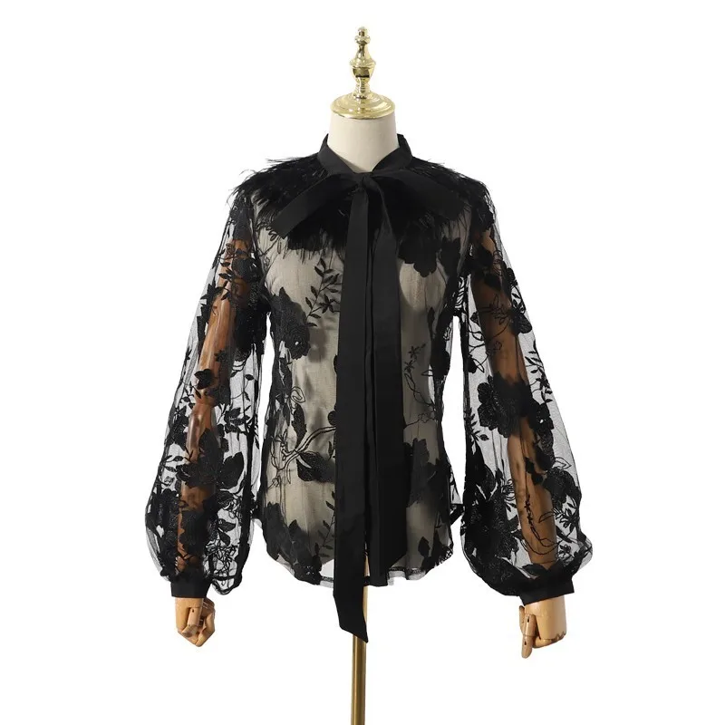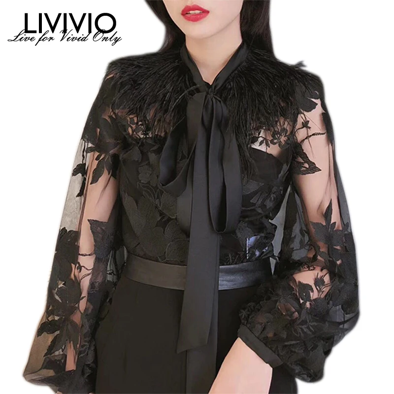 Special Offer [LIVIVIO] bordado Floral pura 2019 ropa de verano ropa de las mujeres tops de plumas largo manga linterna Vintage blusa de las señoras coreano Discount 45% Today!