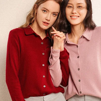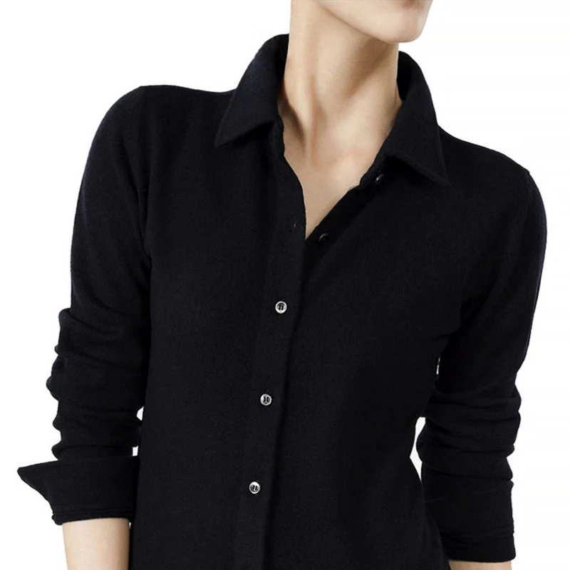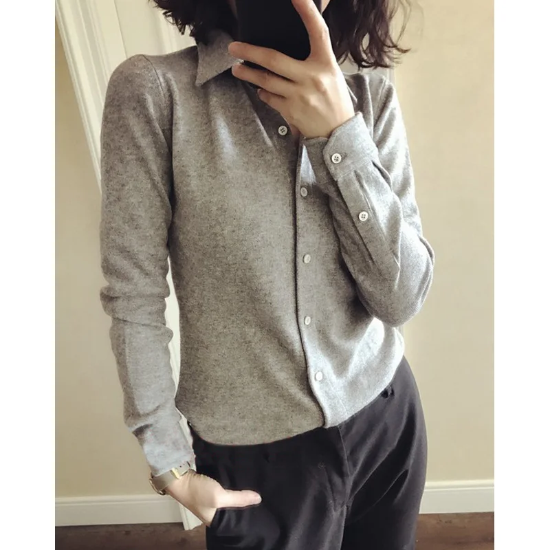 Special Offer 2019 camisa de cachemir POLO para mujer pequeña tarjeta suelta color puro cuello vuelto camisa de punto Discount 48% Today!