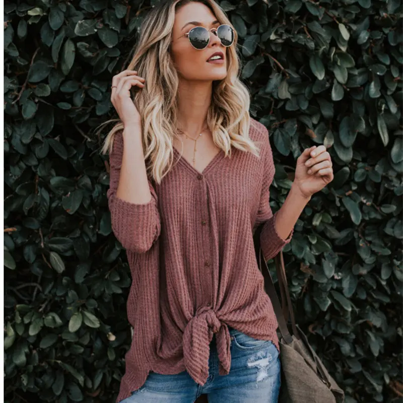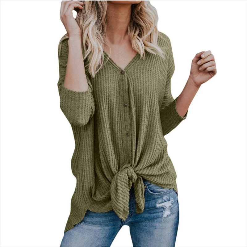 Special Offer Camiseta de manga larga con cuello en V Color sólido Rebeca camiseta inferior suelta salvaje Casual primavera talla grande mujer MZ3344 Discount 48% Today!