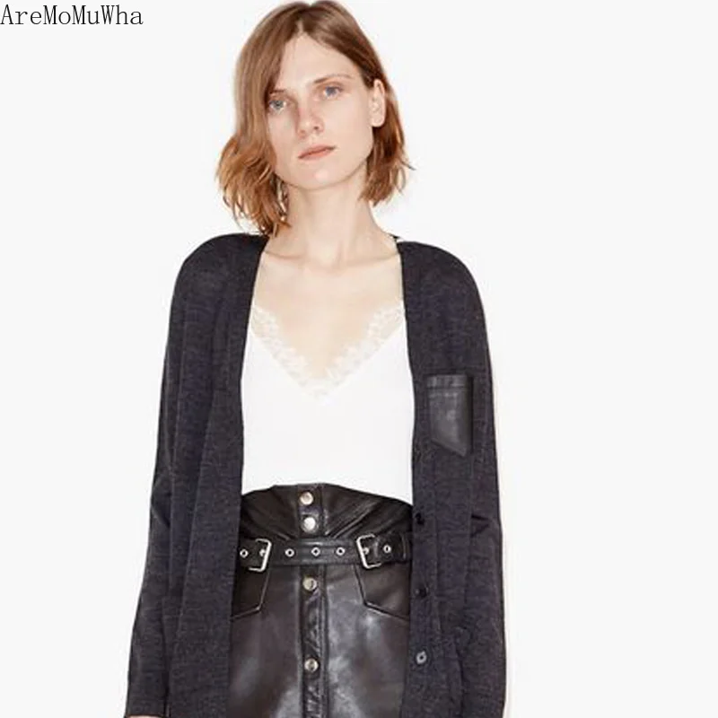 Special Offer AreMoMuWha encaje cuello en V simulación camisola de satén de seda ropa de sección corta otoño e invierno tomar las mujeres de fondo suelto ShirtQX488 Discount 49% Today!