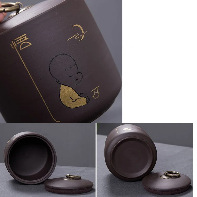 Special Offer Caja de almacenamiento de té de impresión de bambú de estilo chino, tarro de té de 9,8*10,2 cm, recipiente de fruta seca, recipiente de almacenamiento de especias de arcilla púrpura Discount 5% Today!