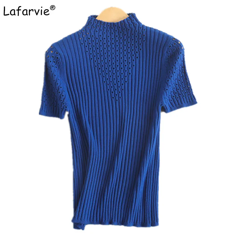 Special Offer Suéter de cachemira de punto delgado de Primavera de verano de lafarfie para mujer de manga corta de medio cuello alto Jersey camiseta de fondo Discount 50% Today!