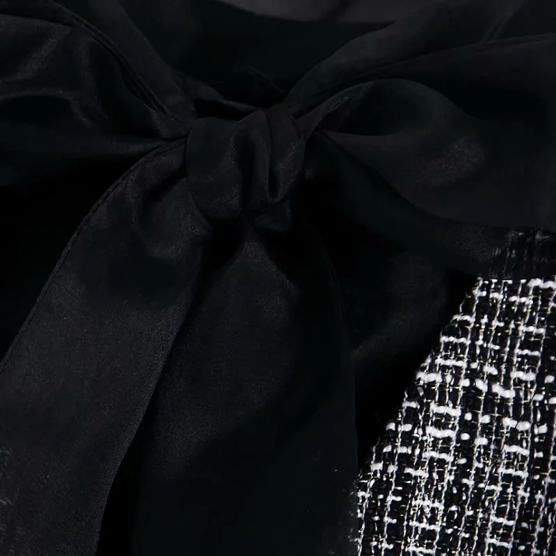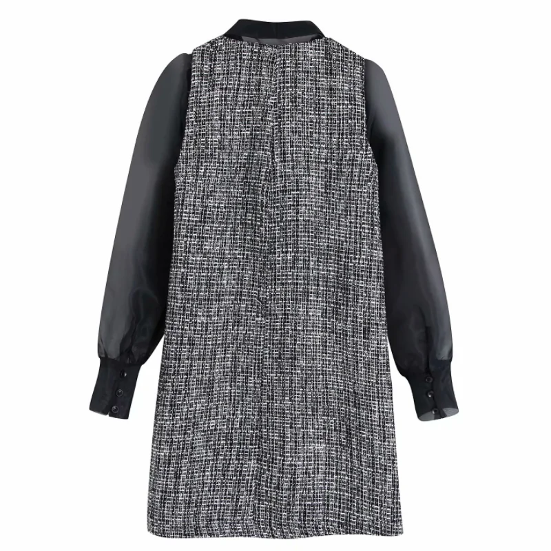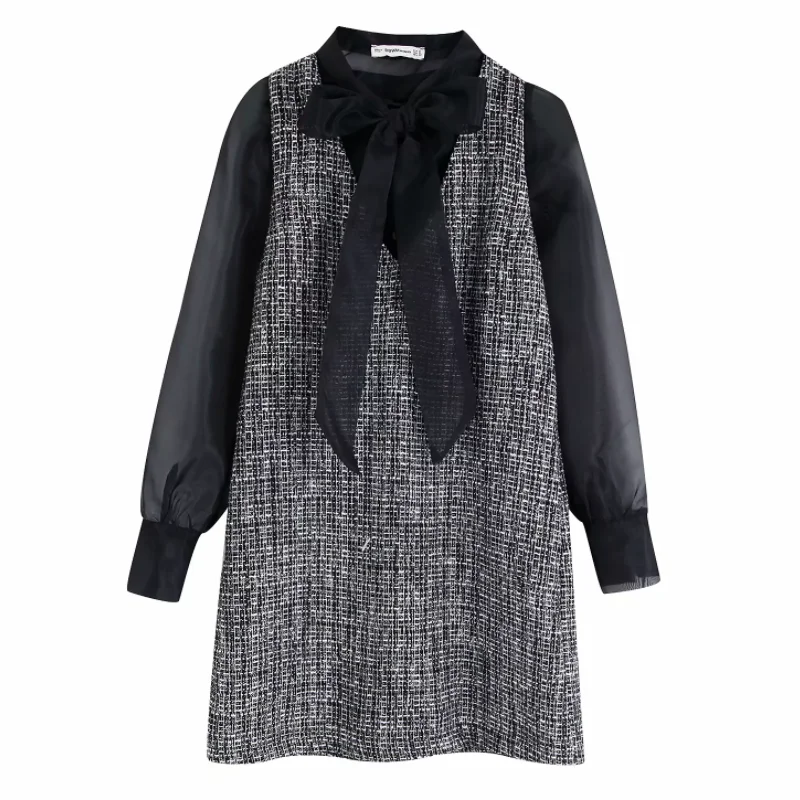 Special Offer Mujeres elegante lazo atado collar organza patchwork tweed lana mini vestido Oficina señora Vestidos de manga larga Vestidos ropa DS2973 Discount 0% Today!