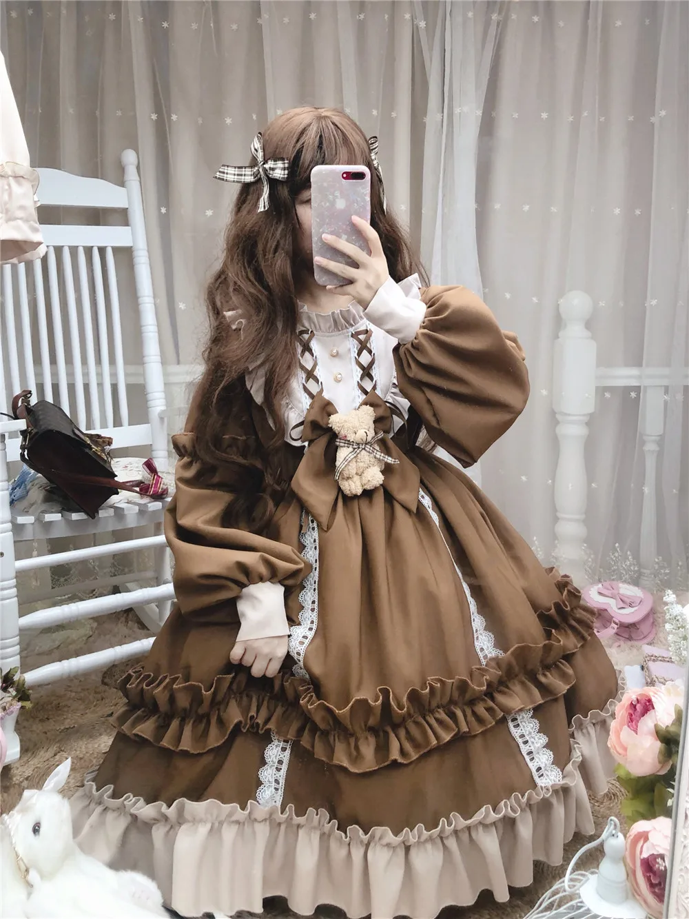 Special Offer Otoño Invierno vintage dulce lolita vestido Palacio encaje bowknot puff manga alta cintura victoriana vestido kawaii chica gótico lolita op Discount 0% Today!
