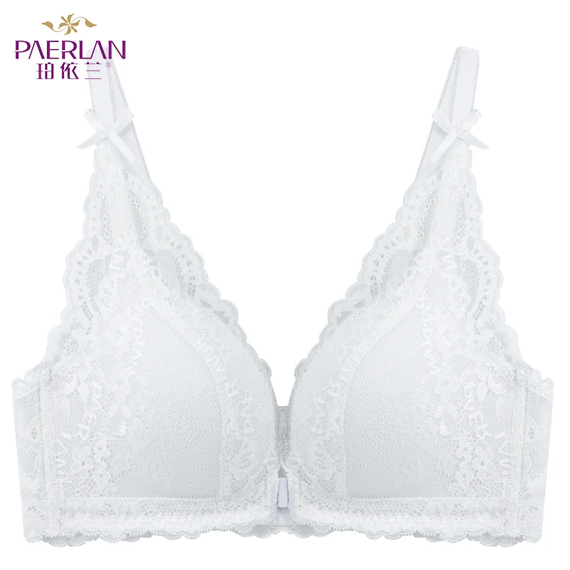 Special Offer PAERLAN Sexy Push Up Sujetador de encaje fino Floral arco cierre frontal sin costura alambre libre pequeño pecho blanco 1 2 taza mujer ropa interior Discount 0% Today!