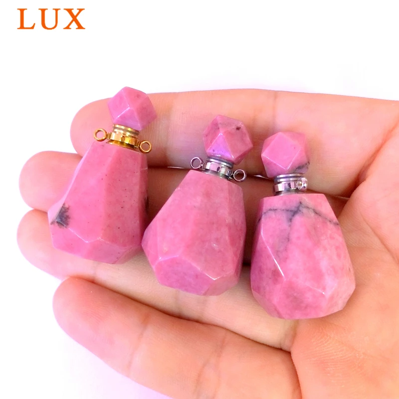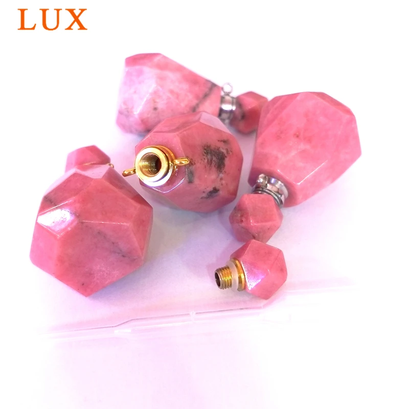 Special Offer Rodonita botella de perfume colgante Chakra gemas naturales piedra Perfume botella conector mágico medicina botella Rosa Aroma aceite encanto Discount 0% Today!