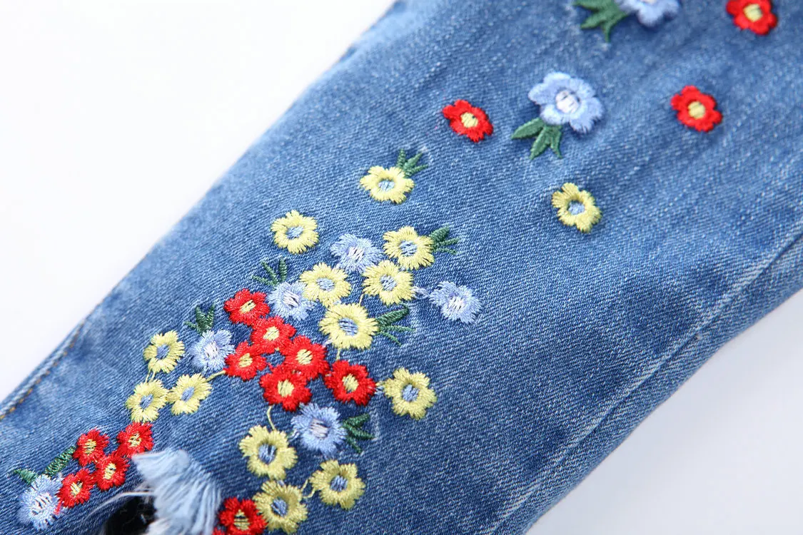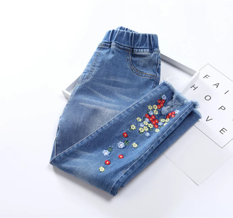 Special Offer Primavera bebé niñas Denim flor bordado Jeans niños lápiz pantalones flor fondos Floral Casual NIÑOS 2 11 años gota envío Discount 10% Today!