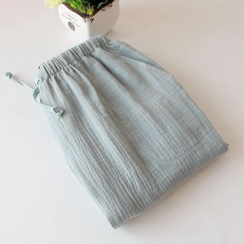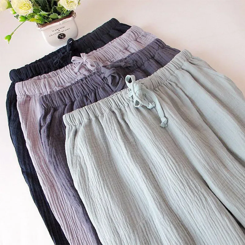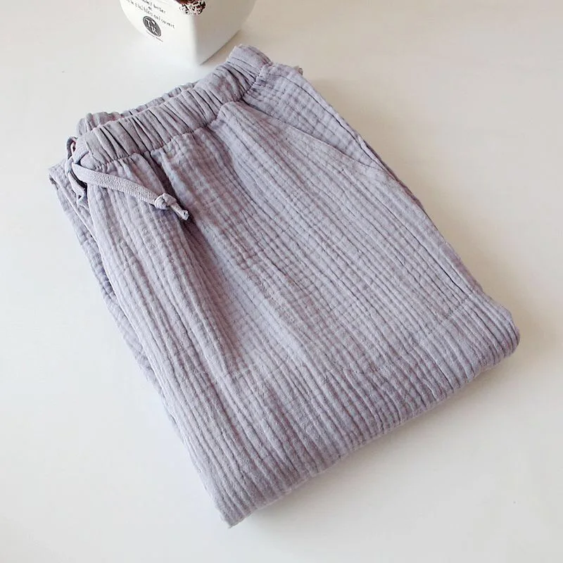 Special Offer Pantalones de dormir de algodón 2019 para mujer, pantalones de algodón de crepé de estilo simplicidad, pantalones de dormir puros de algodón lavados para el hogar Discount 14% Today!