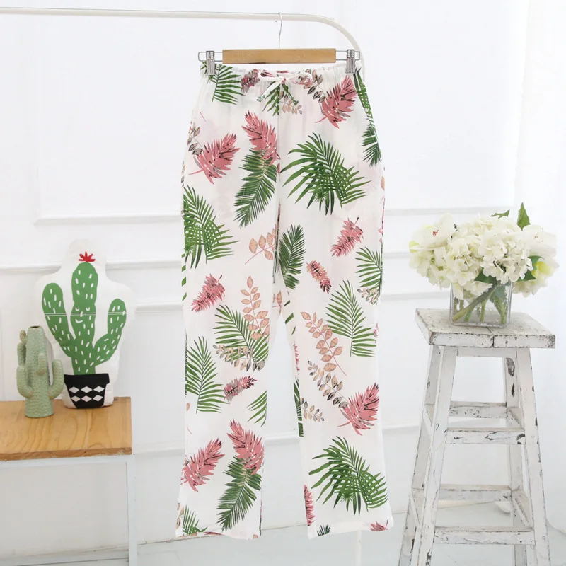 Special Offer Pantalones de gasa de primavera para el hogar pantalones delgados para mujeres ropa de salón pantalones de ocio de algodón suelto ropa de dormir para mujeres pantalones de pijama Discount 15% Today!