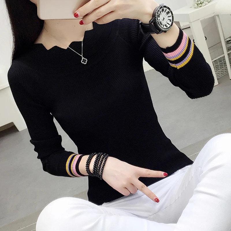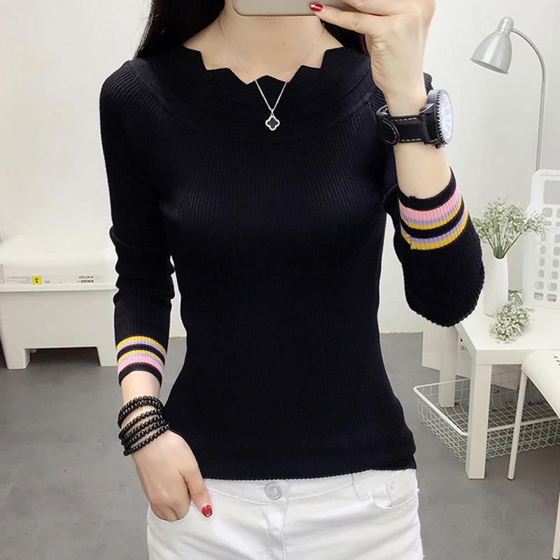 Special Offer Suéteres para mujeres primavera otoño Slash cuello de punto mujeres Slim rayas pulóver suéteres de manga larga Bottoming Jumper Tops Discount 21% Today!