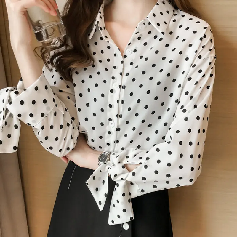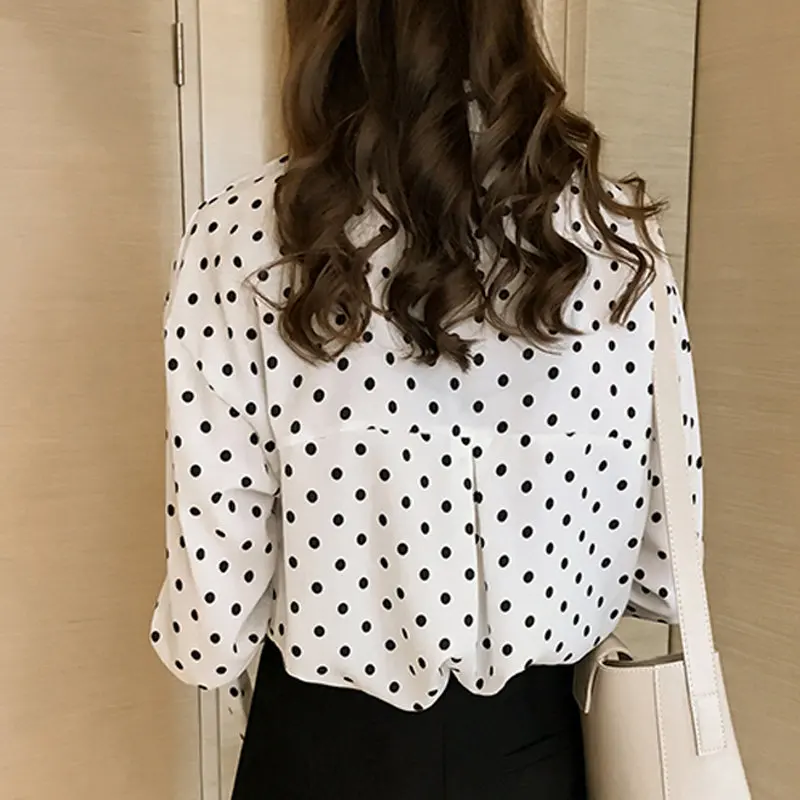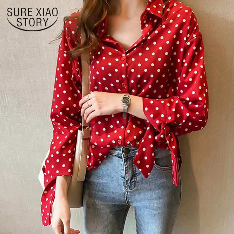 Special Offer 2019 Otoño de talla grande Blusas de mujer Casual Polka Dot Camisas Mujer arco manga larga Blusa de gasa Blusas M 4XL 1202 40 Discount 26% Today!