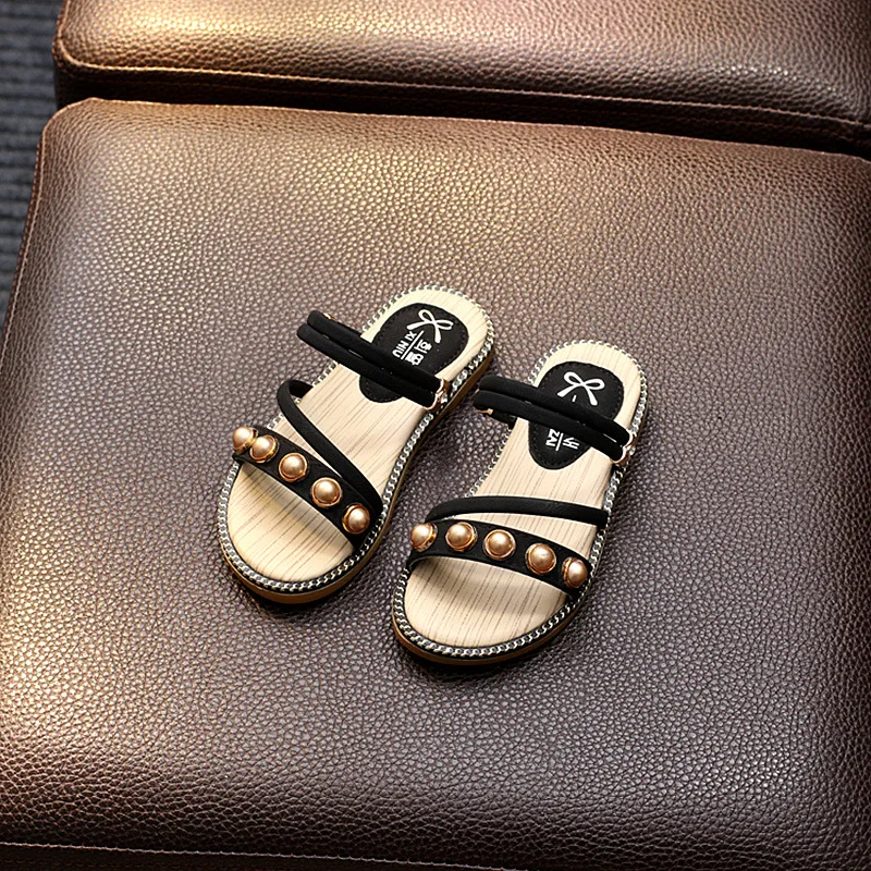 Special Offer 2019 verano nueva princesa de los niños zapatillas planas niñas zapatillas casuales suave inferior perlas fuera del hogar dos zapatillas de desgaste Discount 29% Today!
